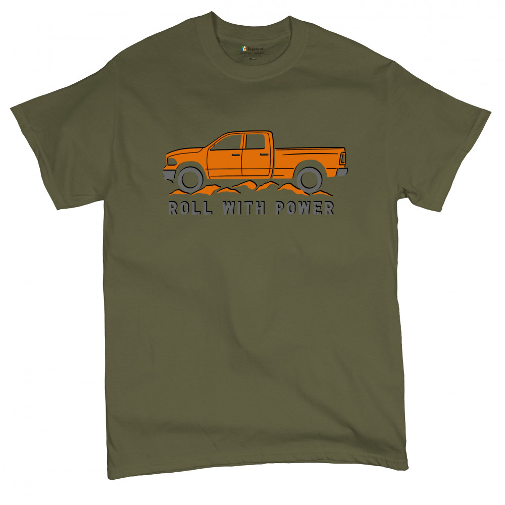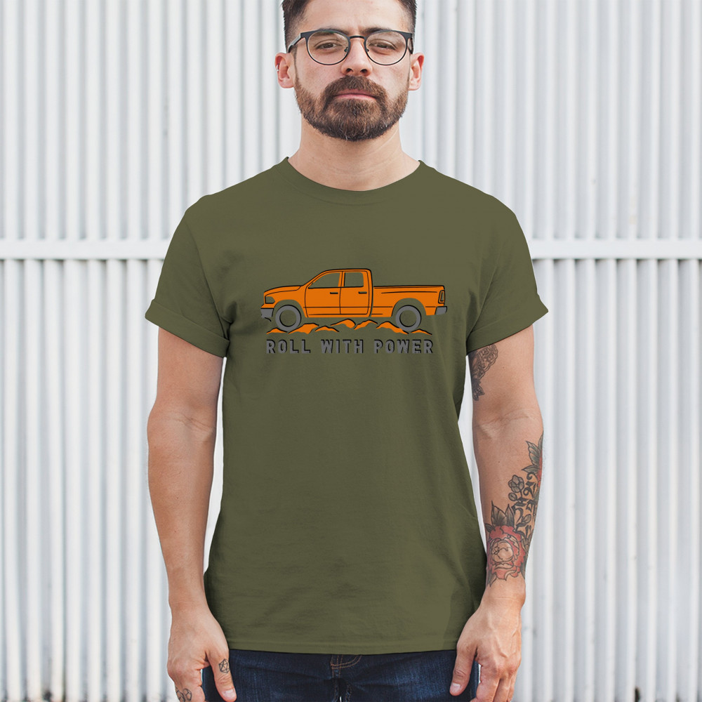 Pickup truck design for off-road fans and truck lovers. Show your road power and style with this bold “Roll With Power†truck graphic.