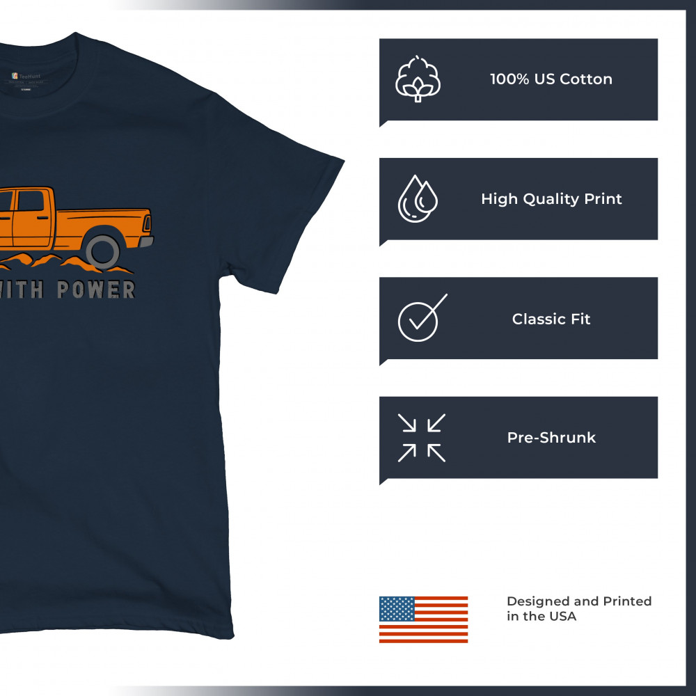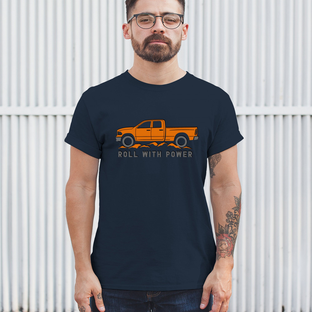 Pickup truck design for off-road fans and truck lovers. Show your road power and style with this bold “Roll With Power†truck graphic.