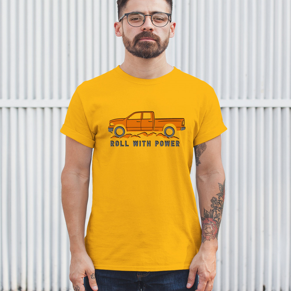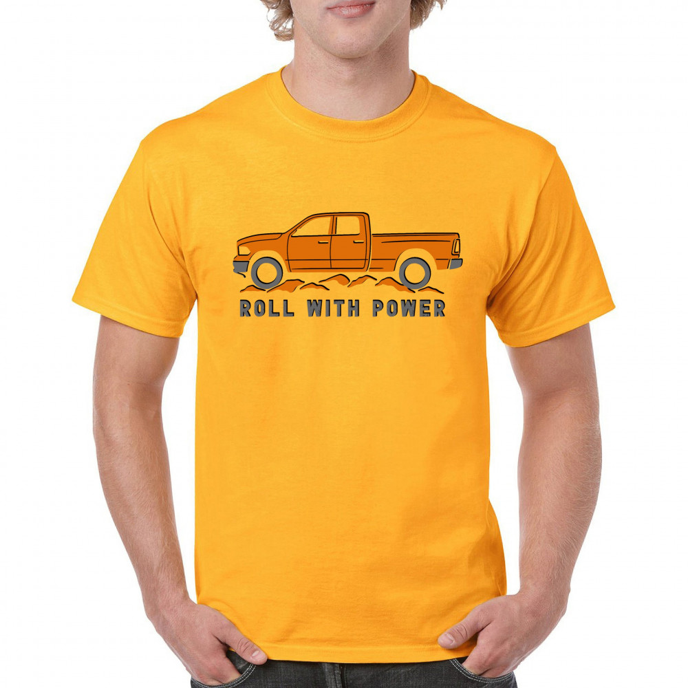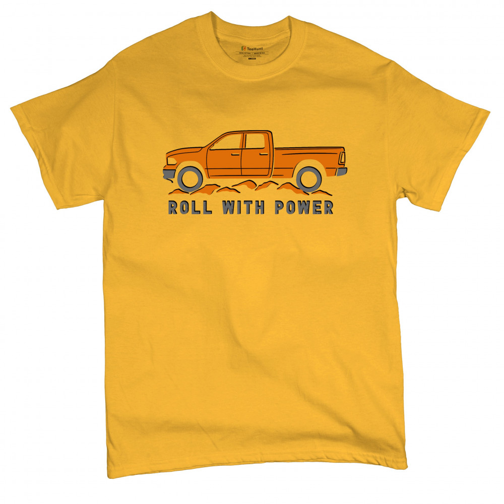 Pickup truck design for off-road fans and truck lovers. Show your road power and style with this bold “Roll With Power†truck graphic.