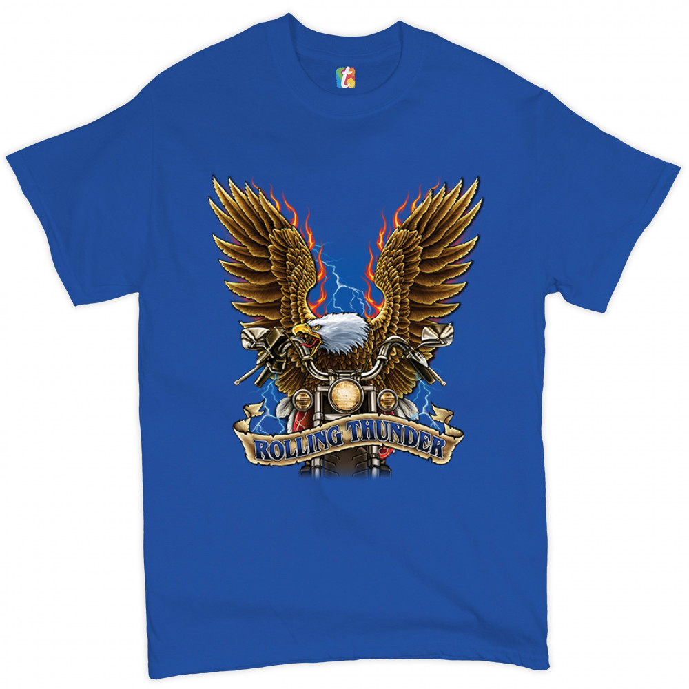 ROLLING THUNDER t-shirt biker born to be wild bald eagle outlaw men's tee royal blue