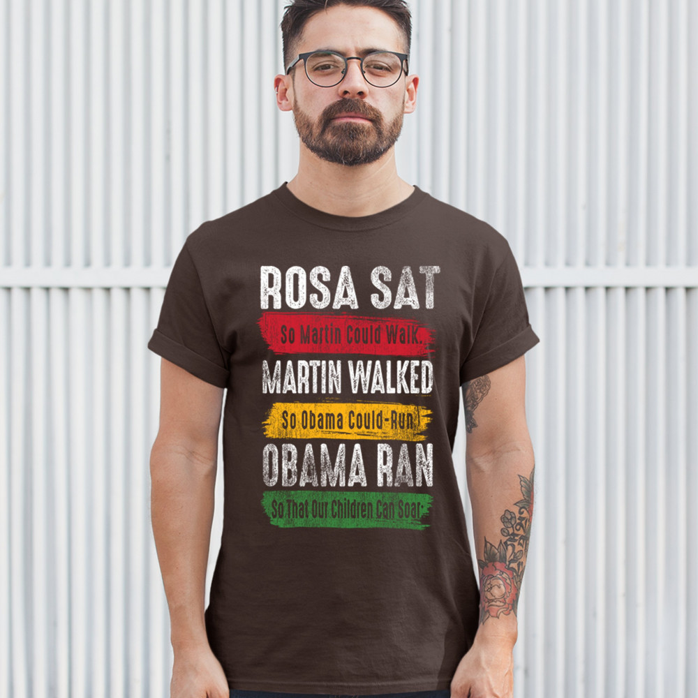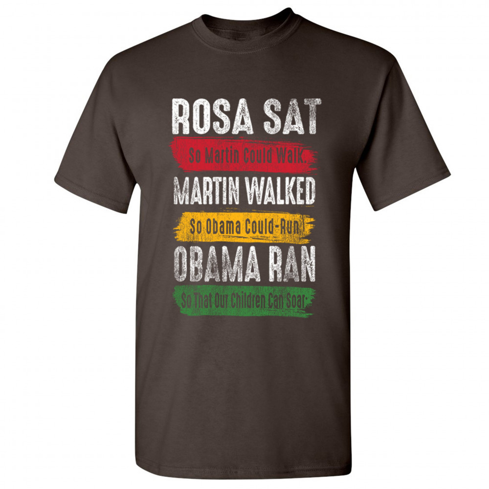 ROSA SAT MARTIN WALKED OBAMA RAN t-shirt blm civil rights equality men's tee brown