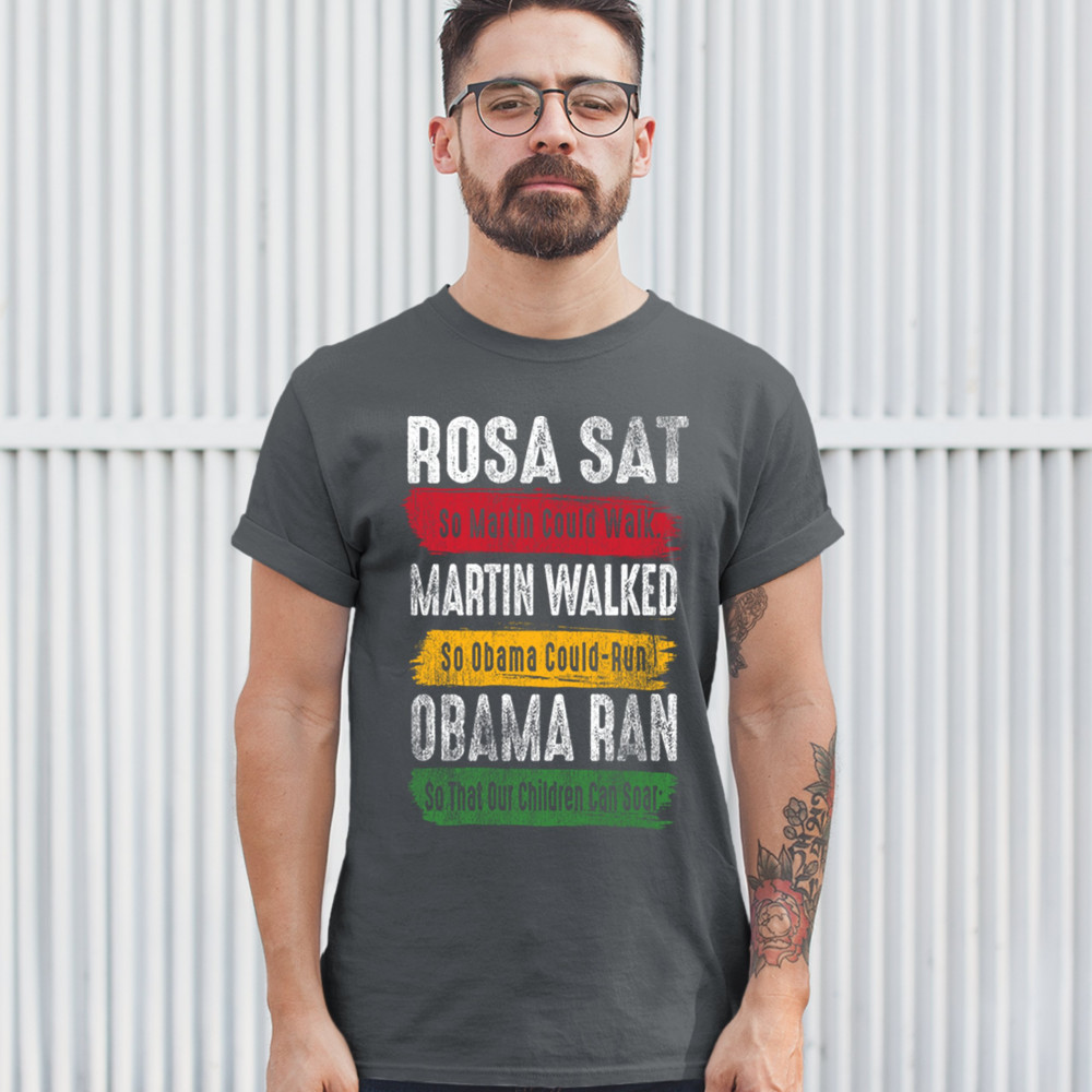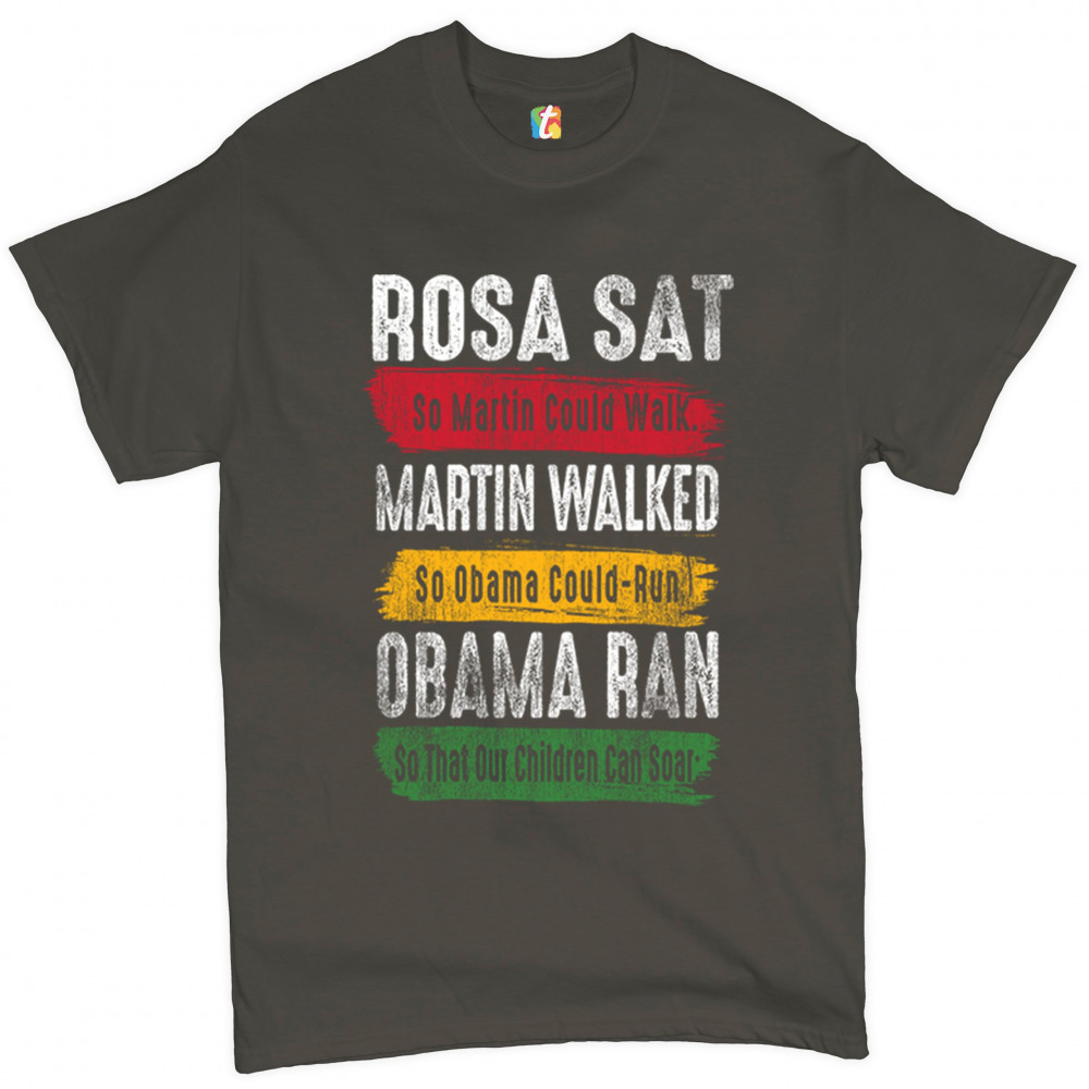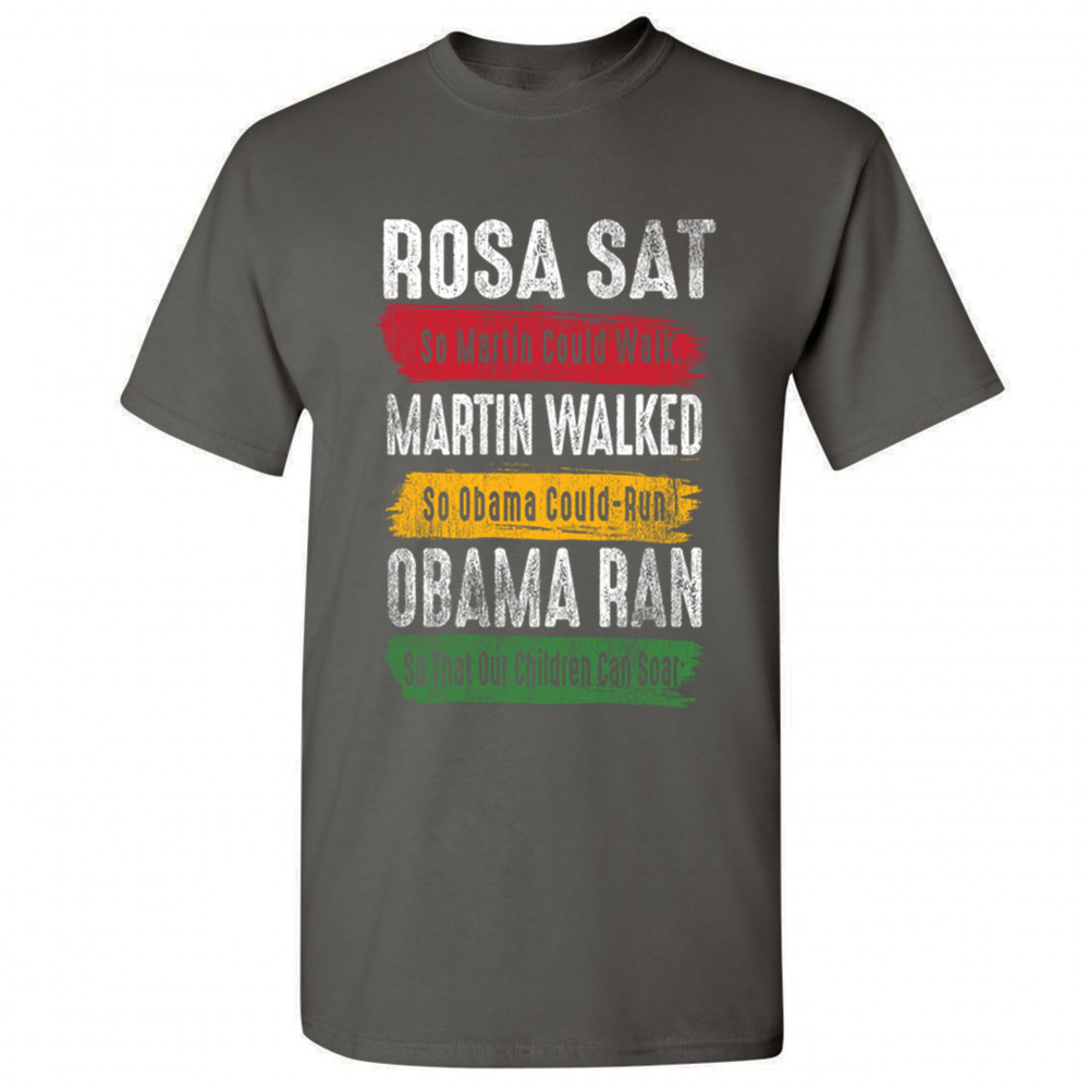 ROSA SAT MARTIN WALKED OBAMA RAN t-shirt blm civil rights equality men's tee charcoal