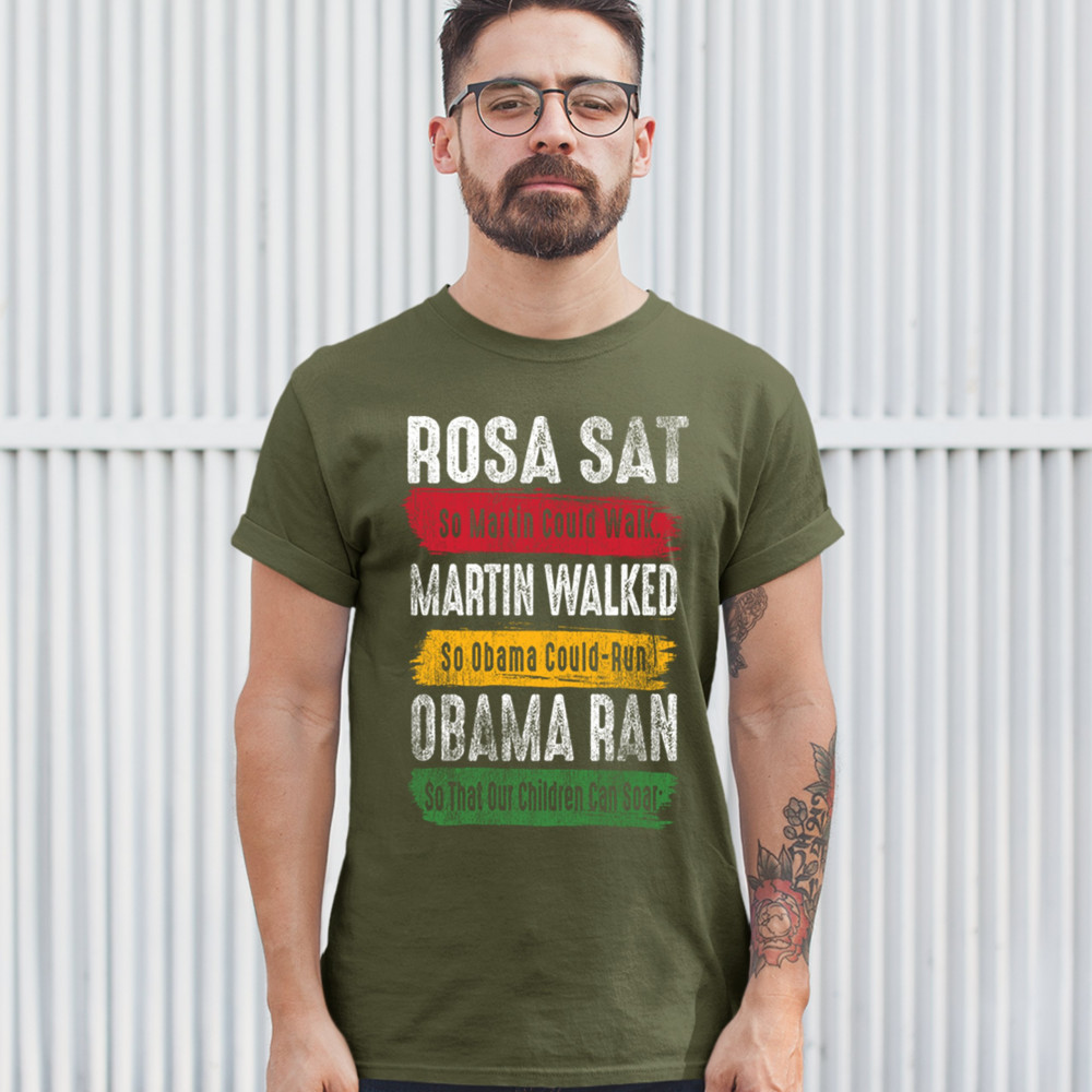 ROSA SAT MARTIN WALKED OBAMA RAN t-shirt blm civil rights equality men's tee military green
