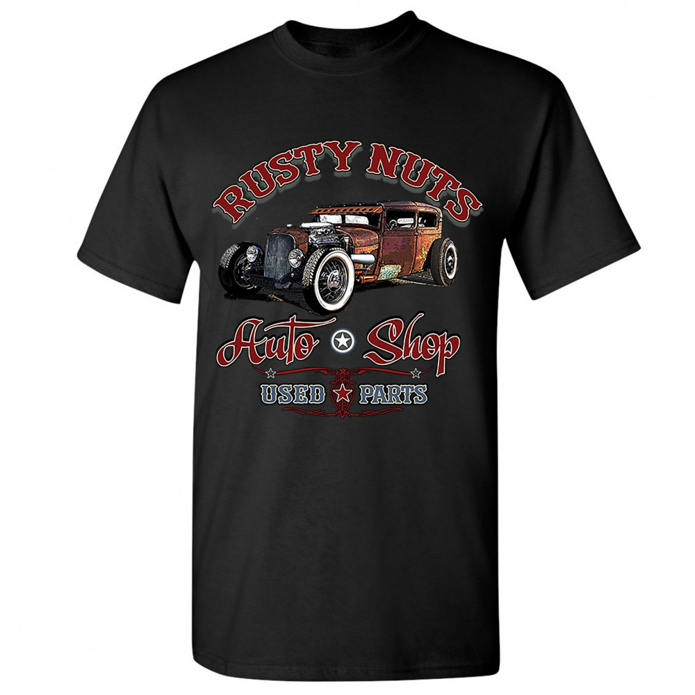 RUSTY NUTS AUTO SHOP t-shirt hot rod rat rod vintage old school men's tee black