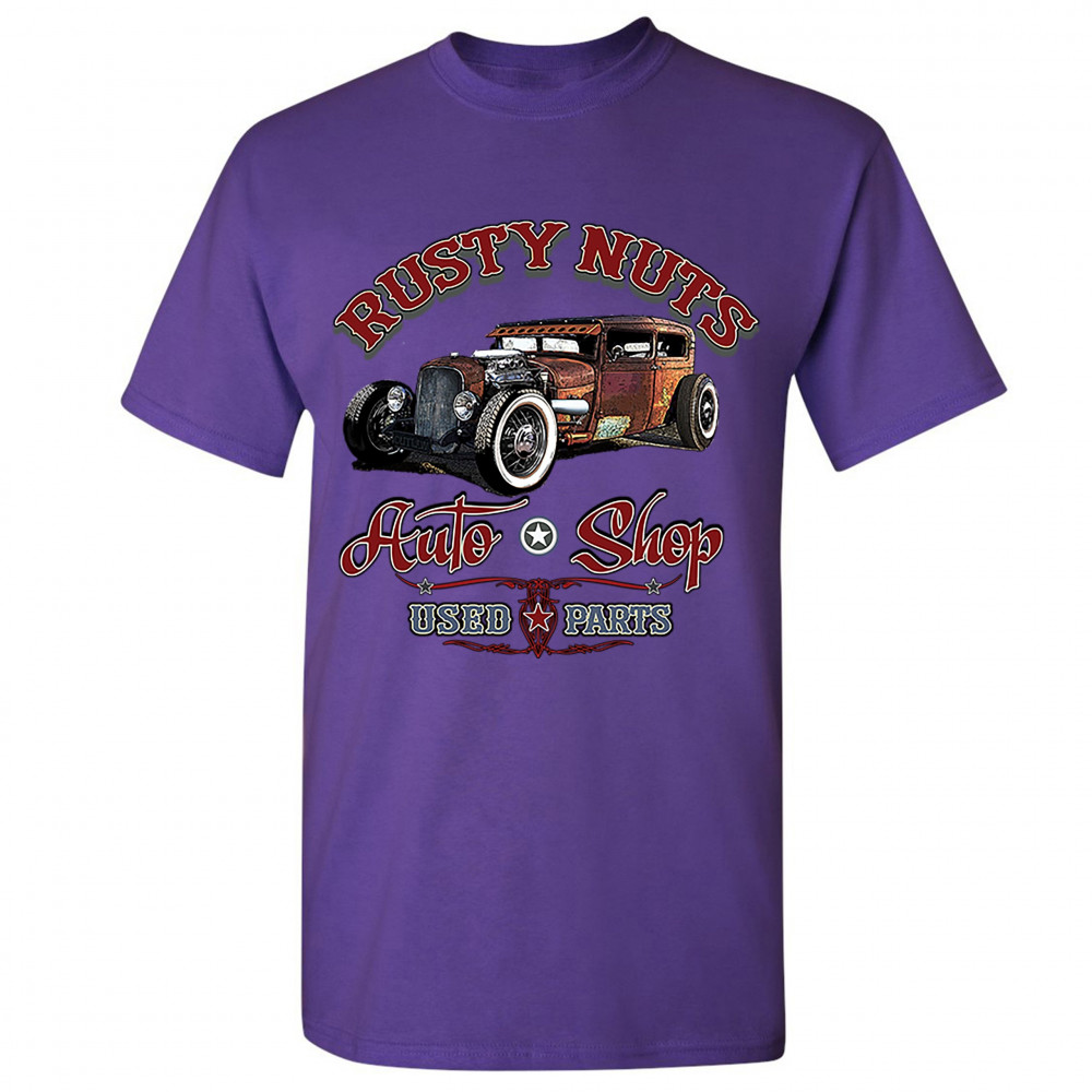 RUSTY NUTS AUTO SHOP t-shirt hot rod rat rod vintage old school men's tee purple