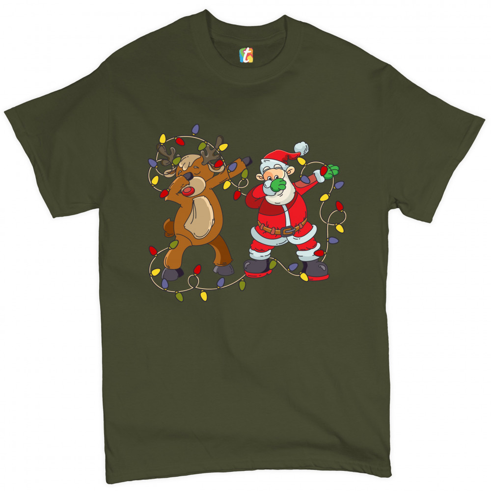 SANTA CLAUS AND RUDOLPH DAB DANCE t-shirt merry christmas xmas men's tee military green