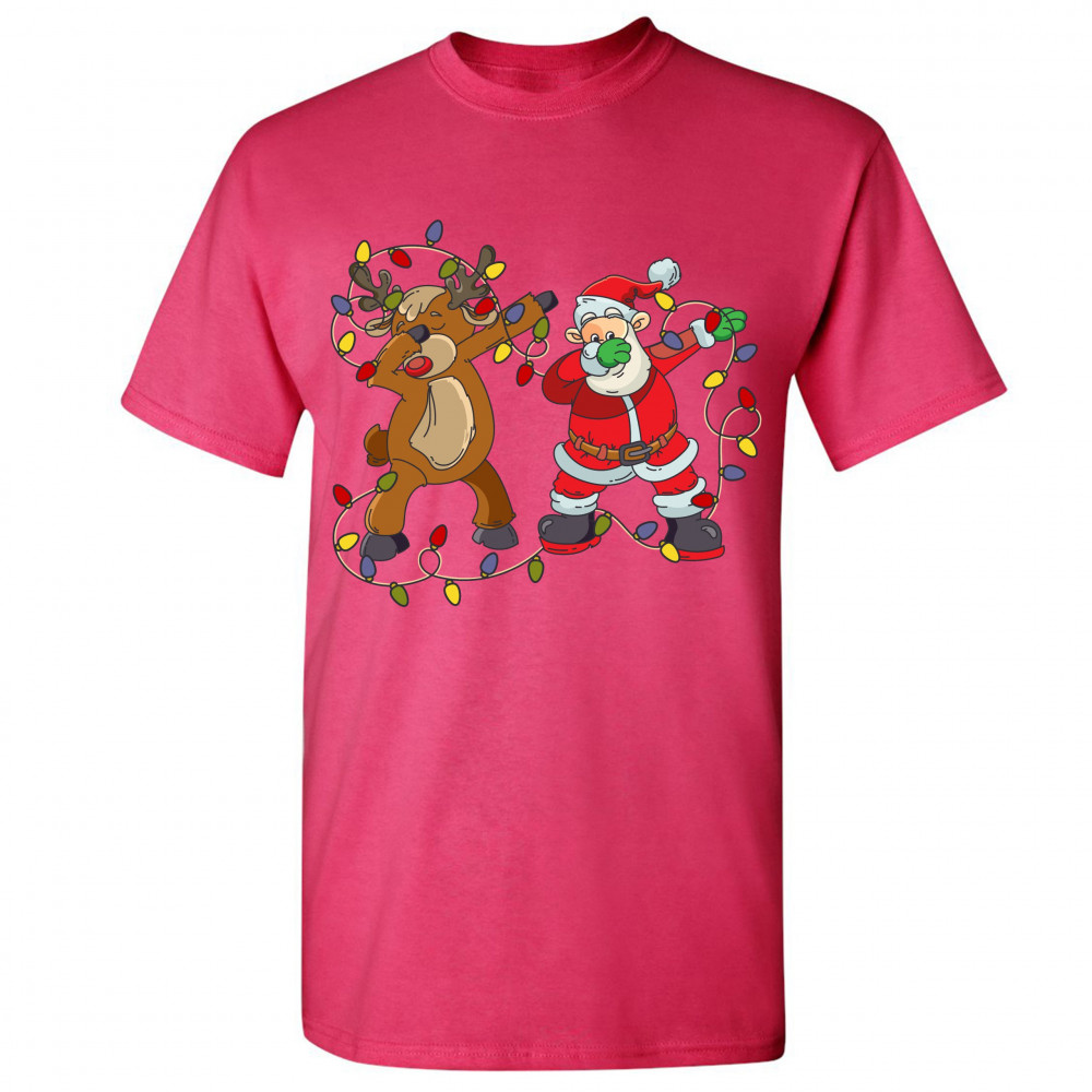 SANTA CLAUS AND RUDOLPH DAB DANCE t-shirt merry christmas xmas men's tee hot pink