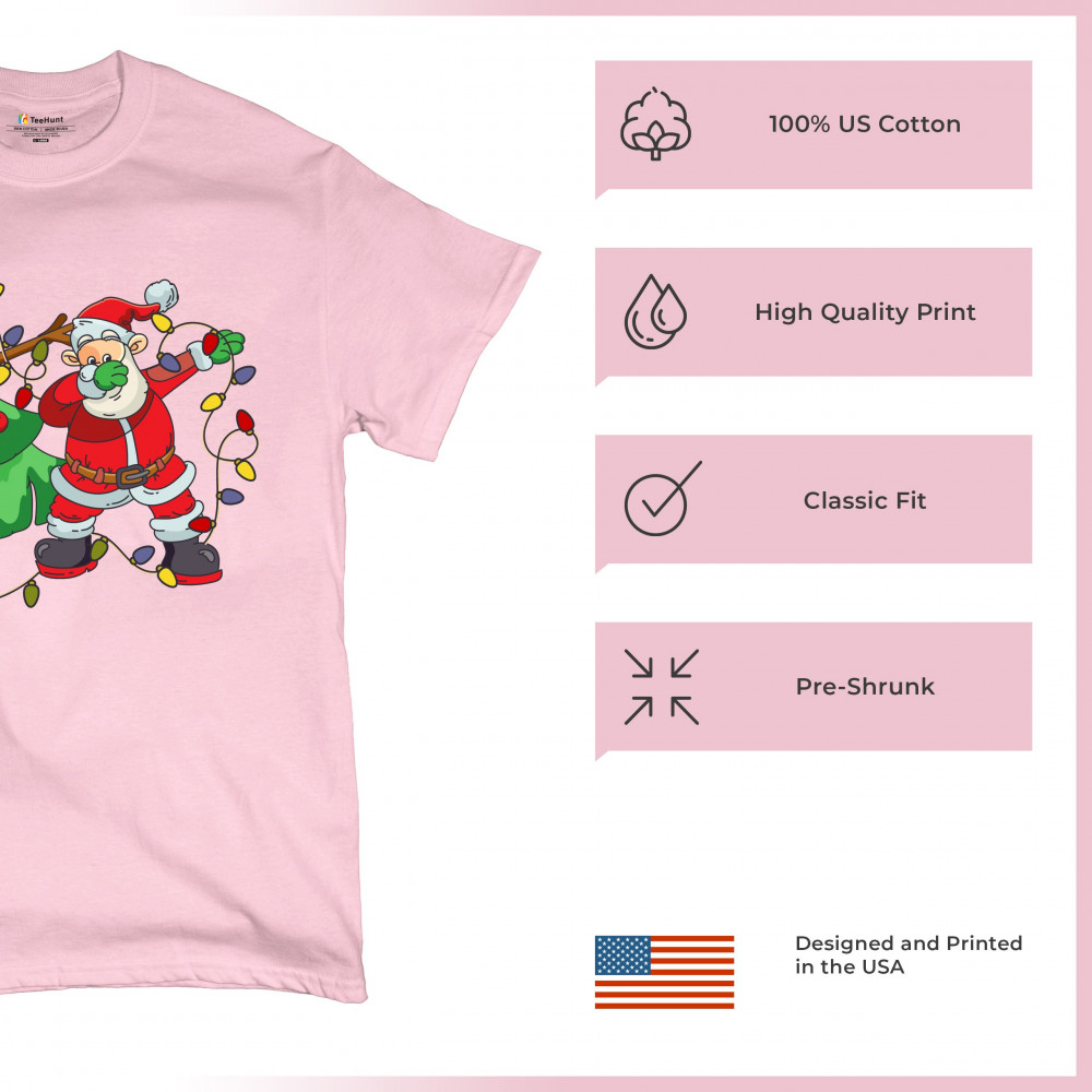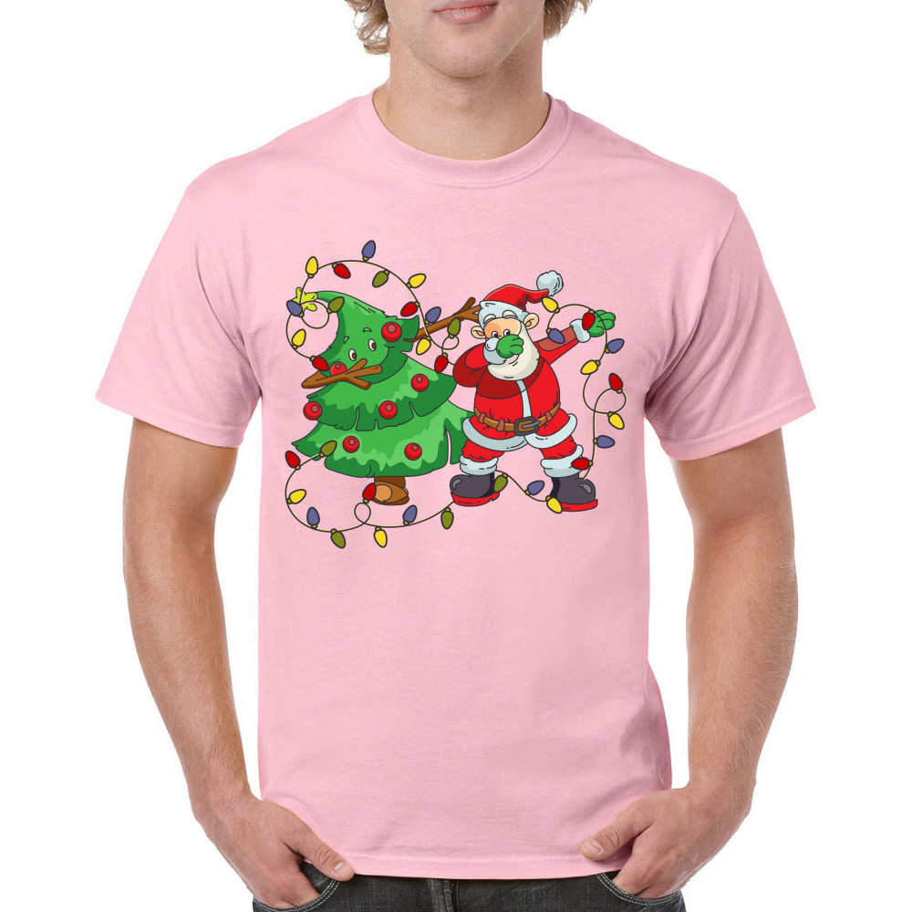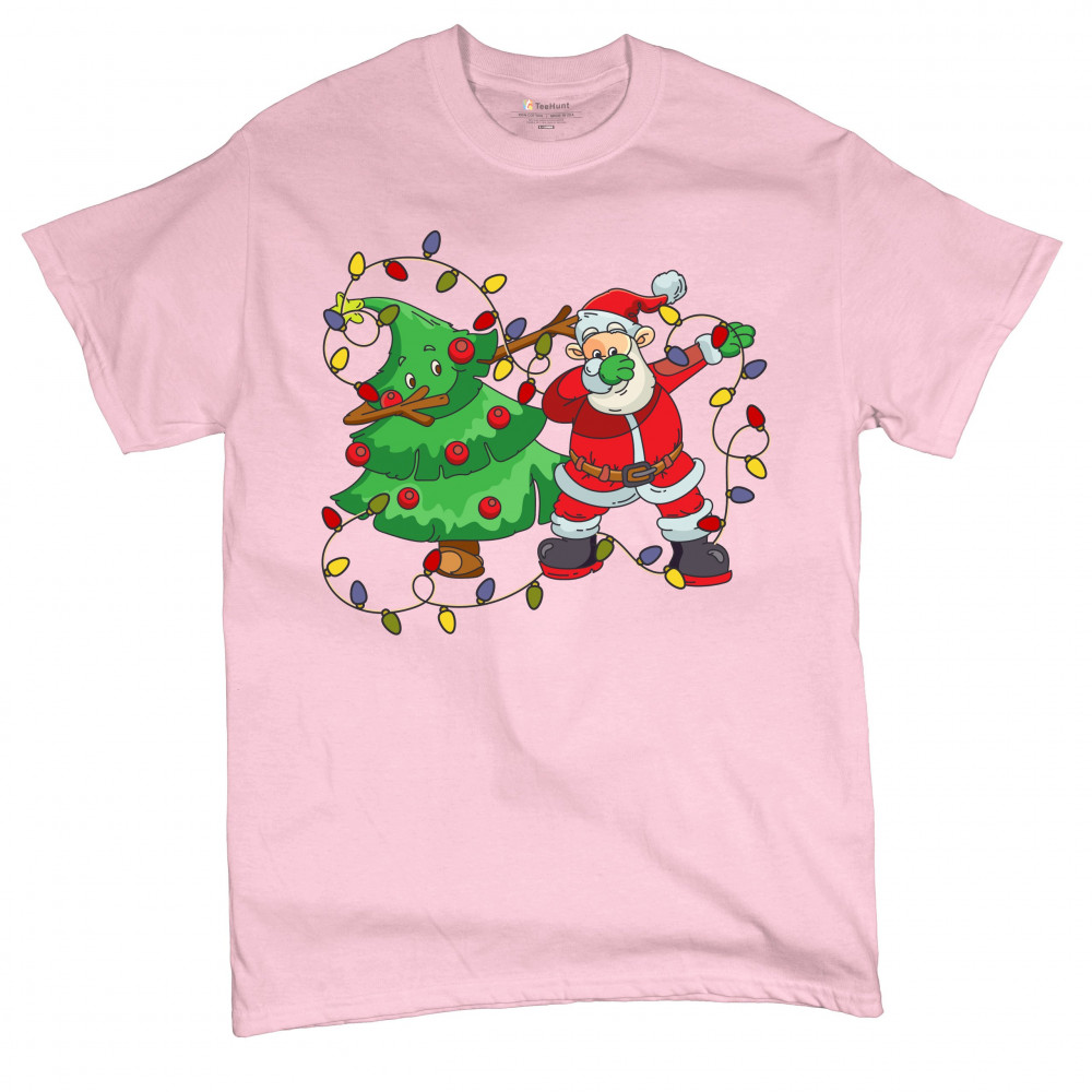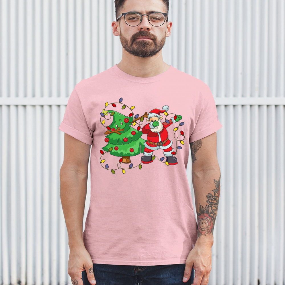 SANTA CLAUS DABBING WITH CHRISTMAS TREE t-shirt merry and bright men's tee light pink