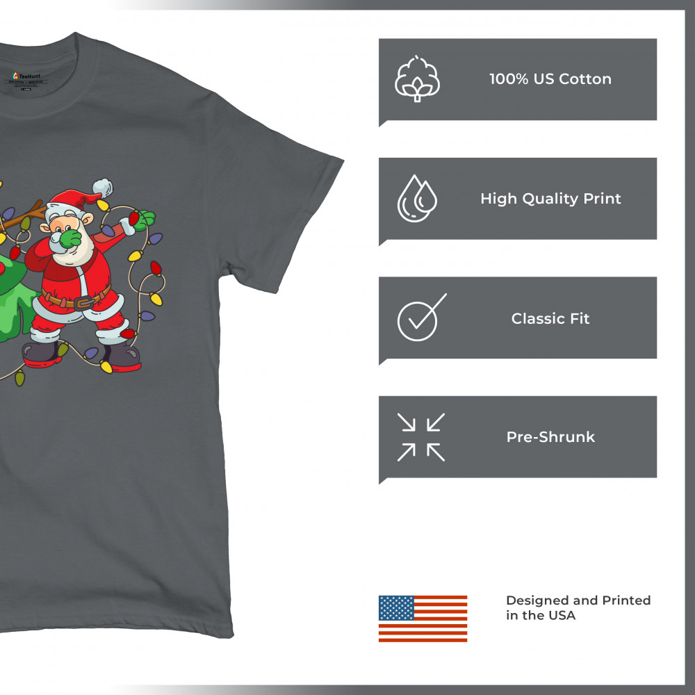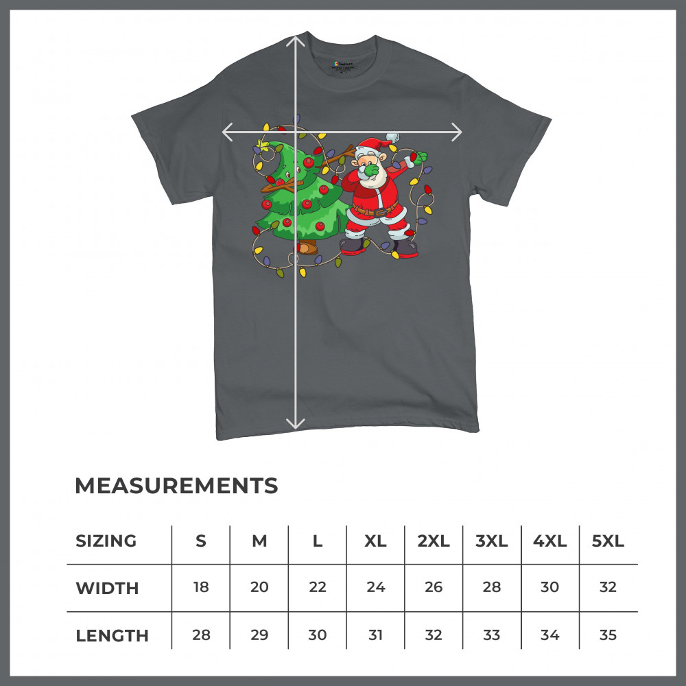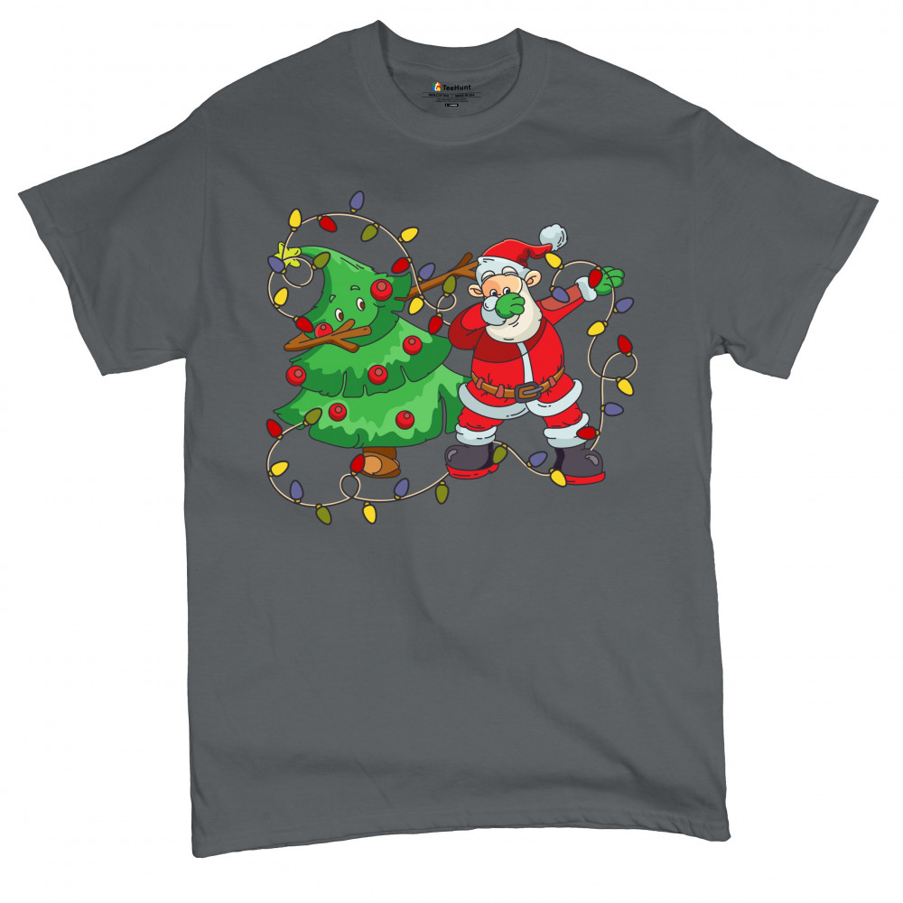 A funny print featuring a Christmas tree and Santa Claus dab dancing while surrounded by Christmas lights. Amazing choice to make people smile and spread positive vibes on Christmas Eve.