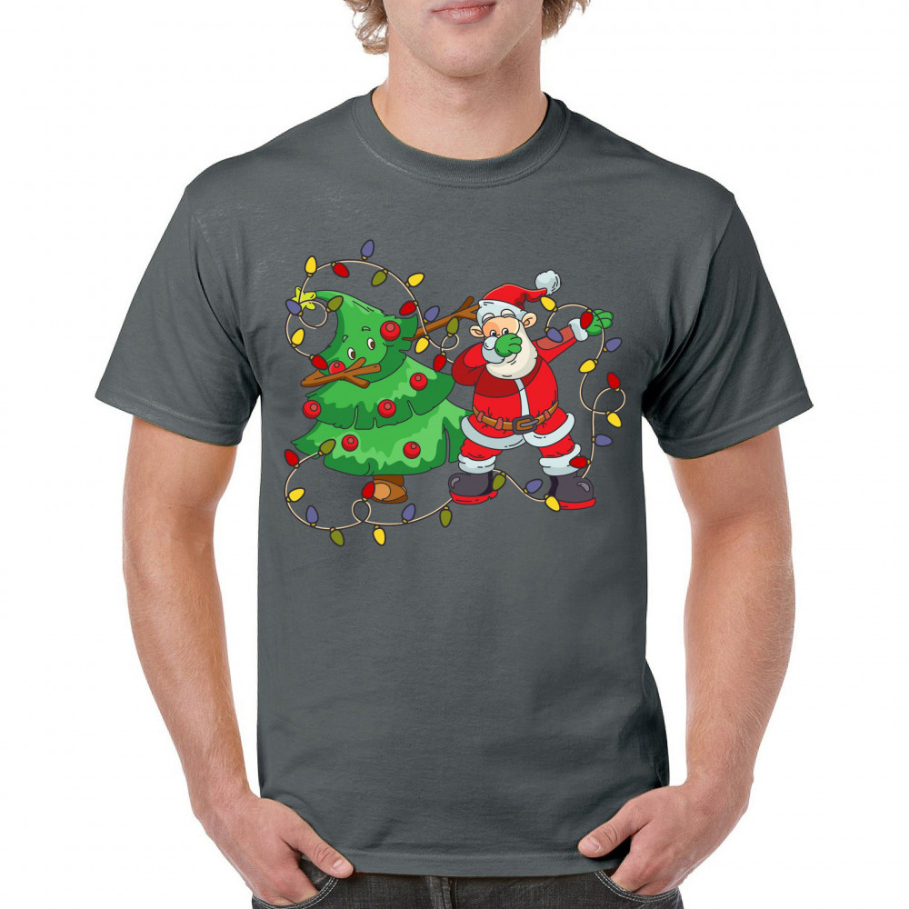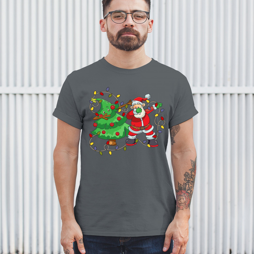SANTA CLAUS DABBING WITH CHRISTMAS TREE t-shirt merry and bright men's tee charcoal