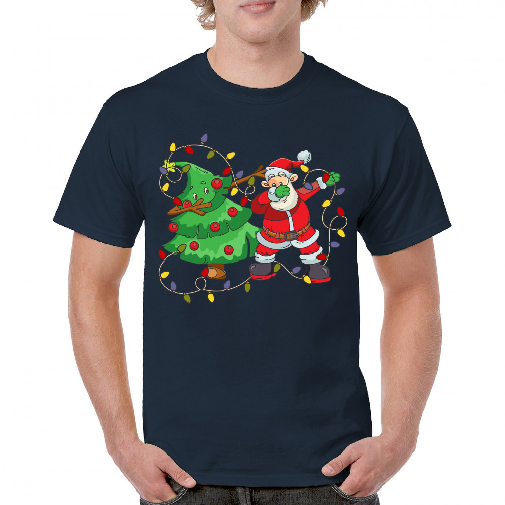 SANTA CLAUS DABBING WITH CHRISTMAS TREE t-shirt merry and bright men's tee navy blue