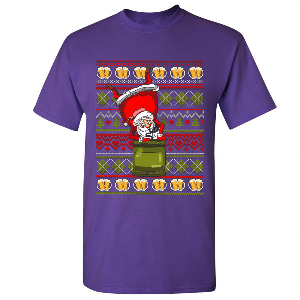 SANTA CLAUS KEG STAND t-shirt christmas ugly sweater beer drinking men's tee purple