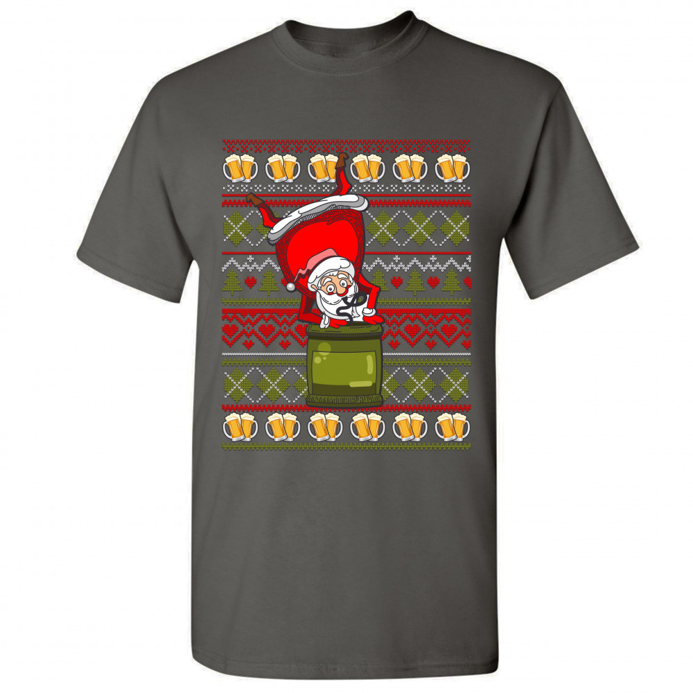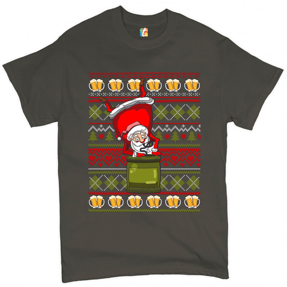 SANTA CLAUS KEG STAND t-shirt christmas ugly sweater beer drinking men's tee charcoal