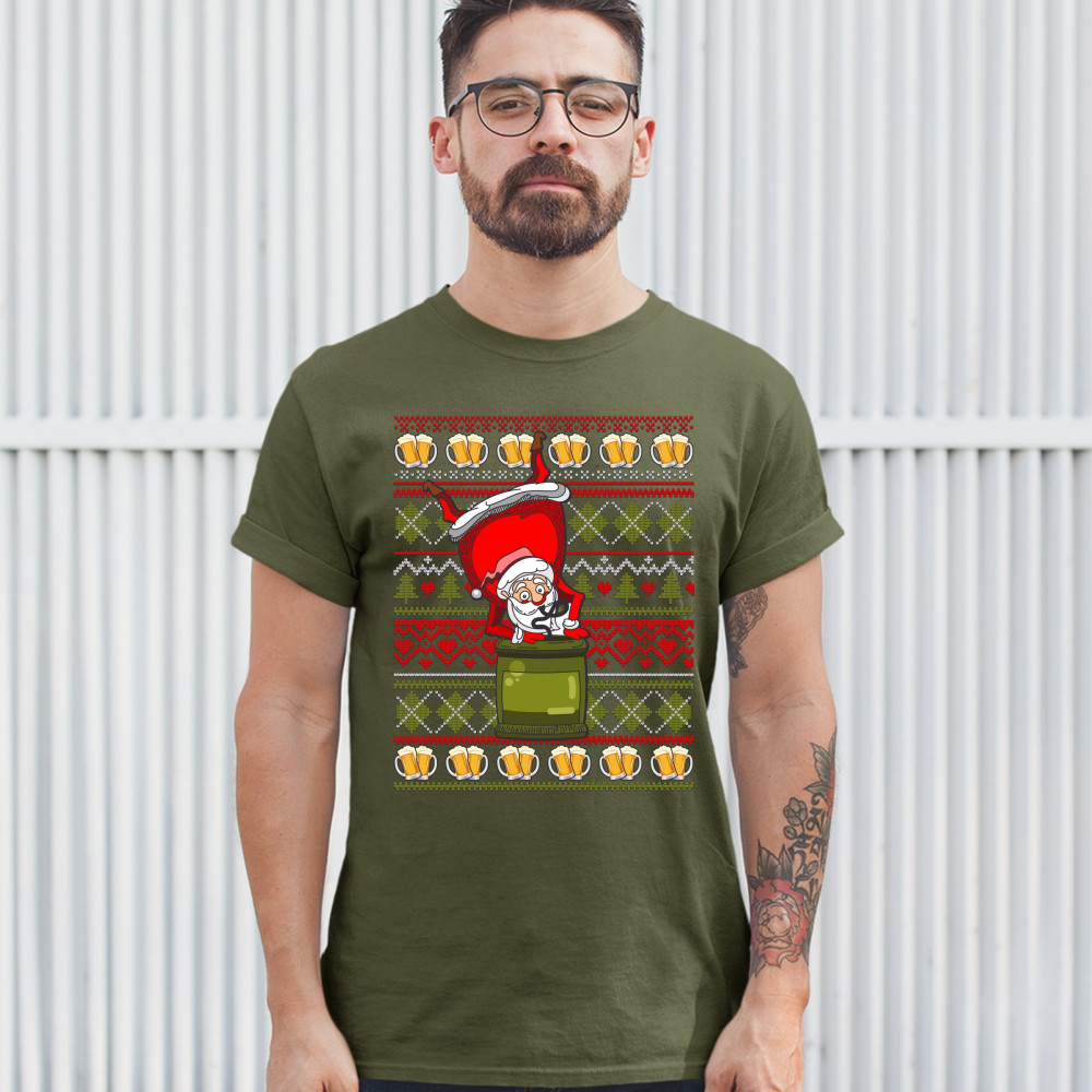 SANTA CLAUS KEG STAND t-shirt christmas ugly sweater beer drinking men's tee military green