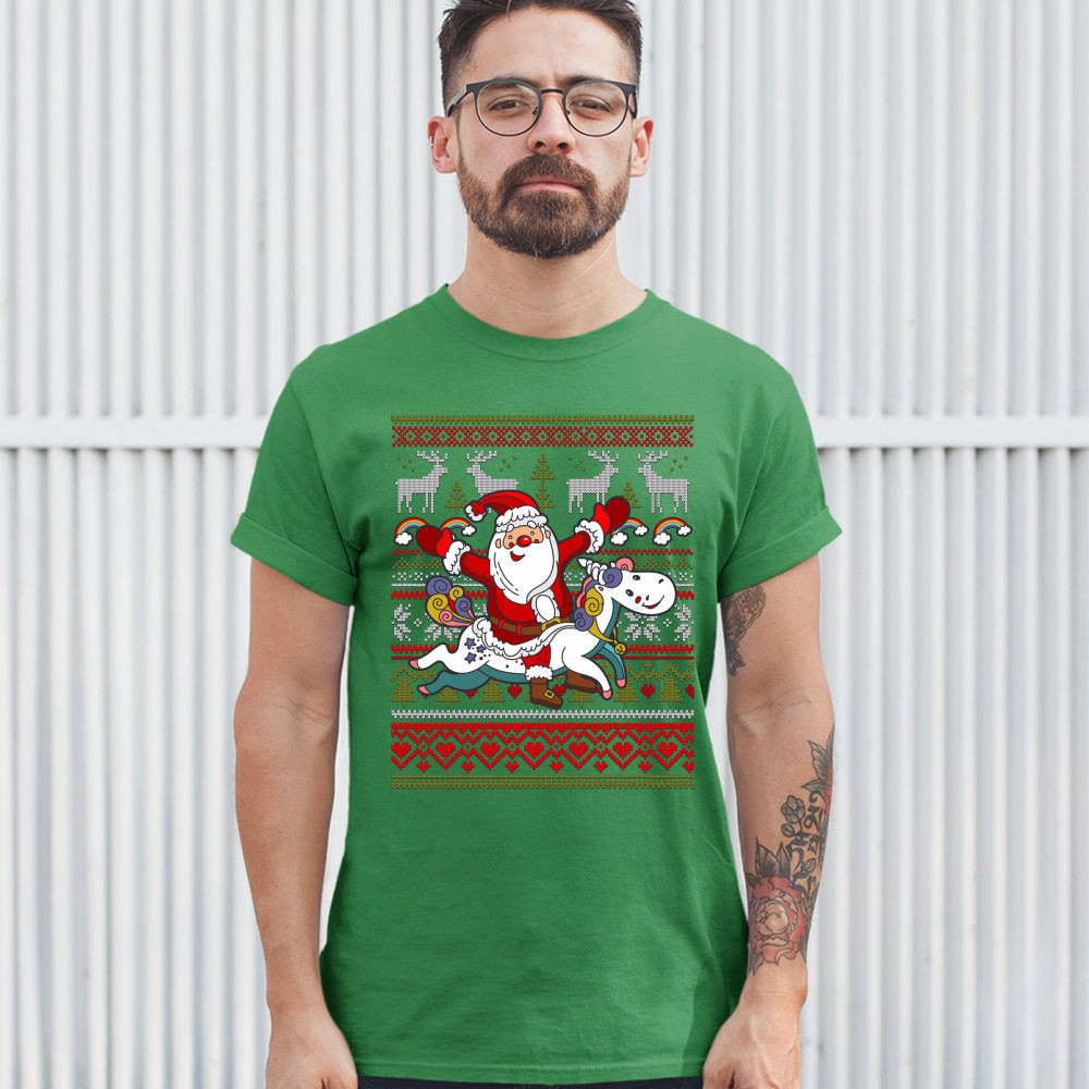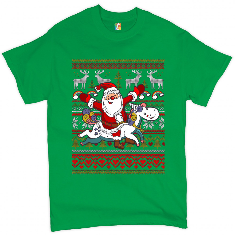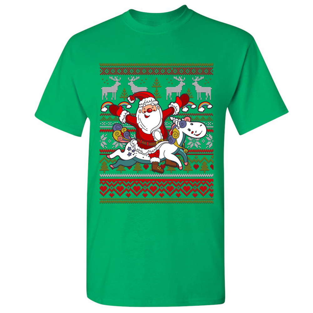 SANTA CLAUS RIDING A UNICORN t-shirt merry christmas ugly sweater men's tee green