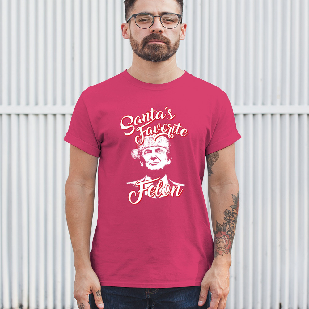 Mix humor and holiday cheer with the "Santa's Favorite Felon" design. Perfect for Christmas parties, gifts, or festive mornings with a political twist!