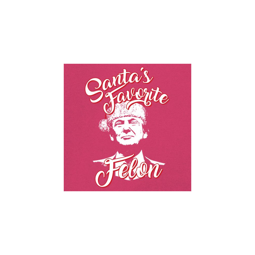 Celebrate the holidays with a touch of humor and political flair with the "Santa's Favorite Felon" design featuring Donald J. Trump. Perfect for Christmas parties, gift exchanges, and festive mornings, this standout design is ideal for sweatshirts, pajamas, or unique holiday gifts. A blend of humor and holiday spirit, this piece is a hit for ugly sweater contests and merry gatherings.