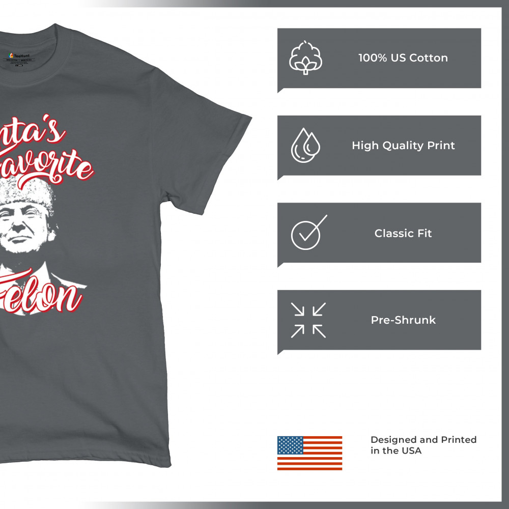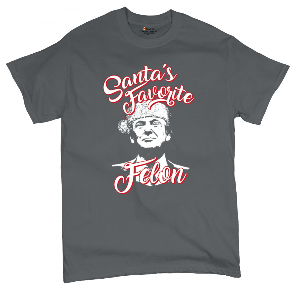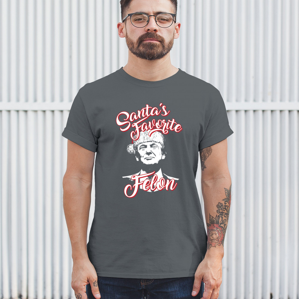 Mix humor and holiday cheer with the "Santa's Favorite Felon" design. Perfect for Christmas parties, gifts, or festive mornings with a political twist!
