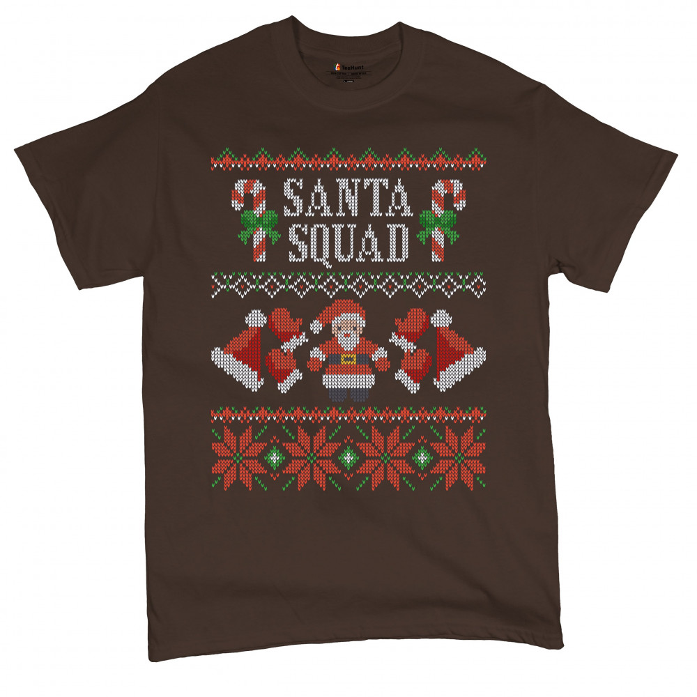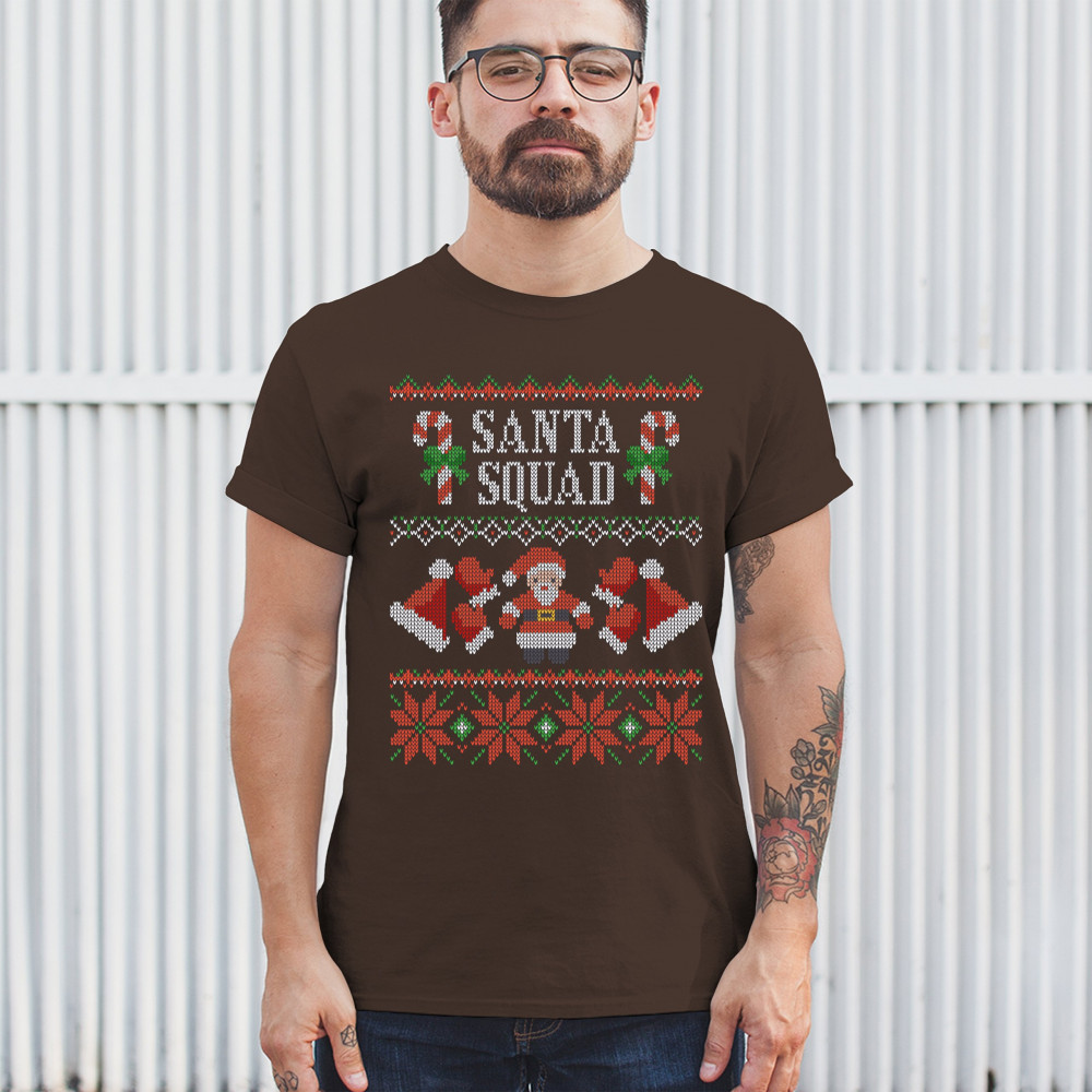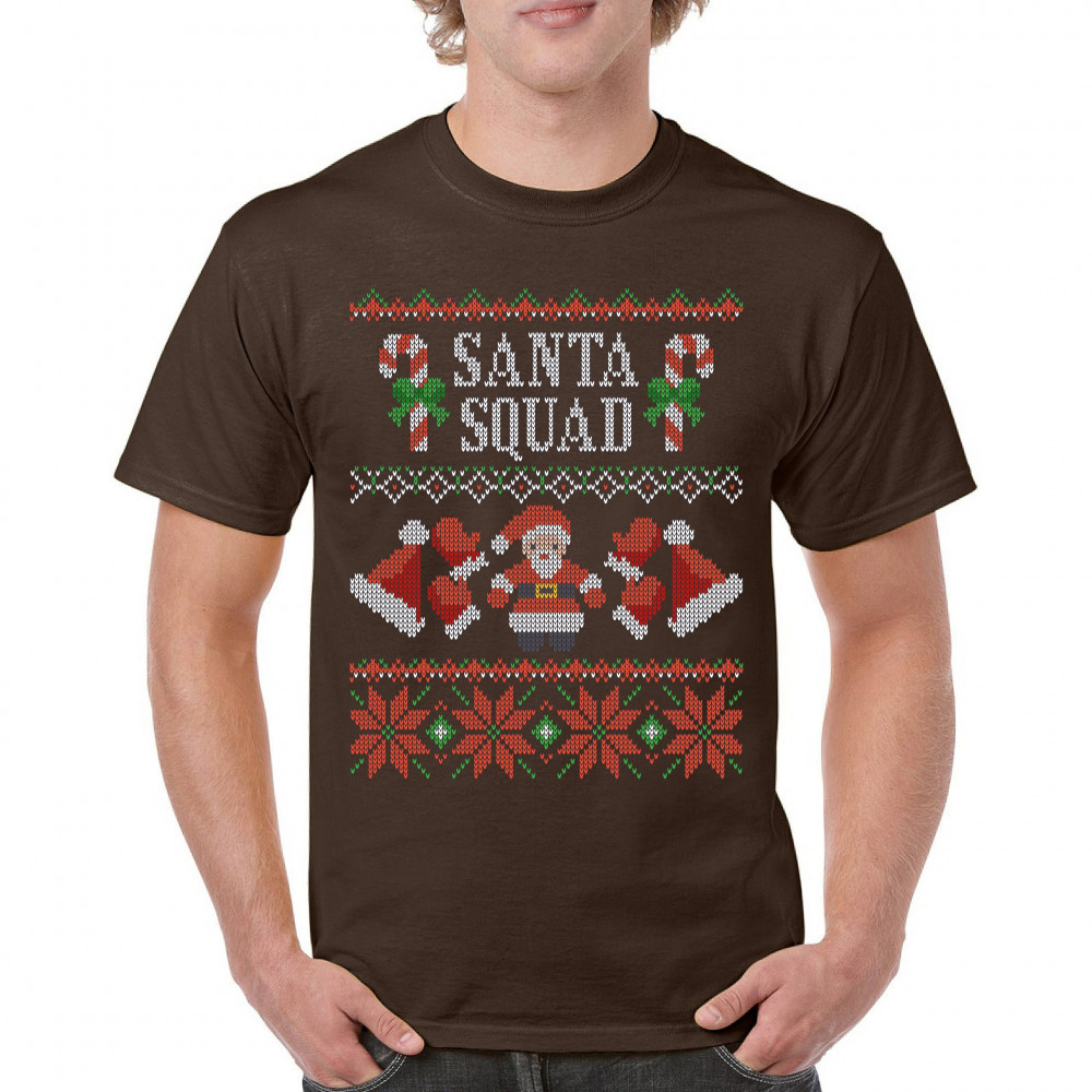 SANTA SQUAD t-shirt cute ugly sweater merry and bright christmas men's tee brown