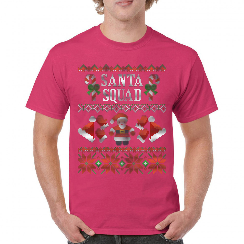 SANTA SQUAD t-shirt cute ugly sweater merry and bright christmas men's tee hot pink
