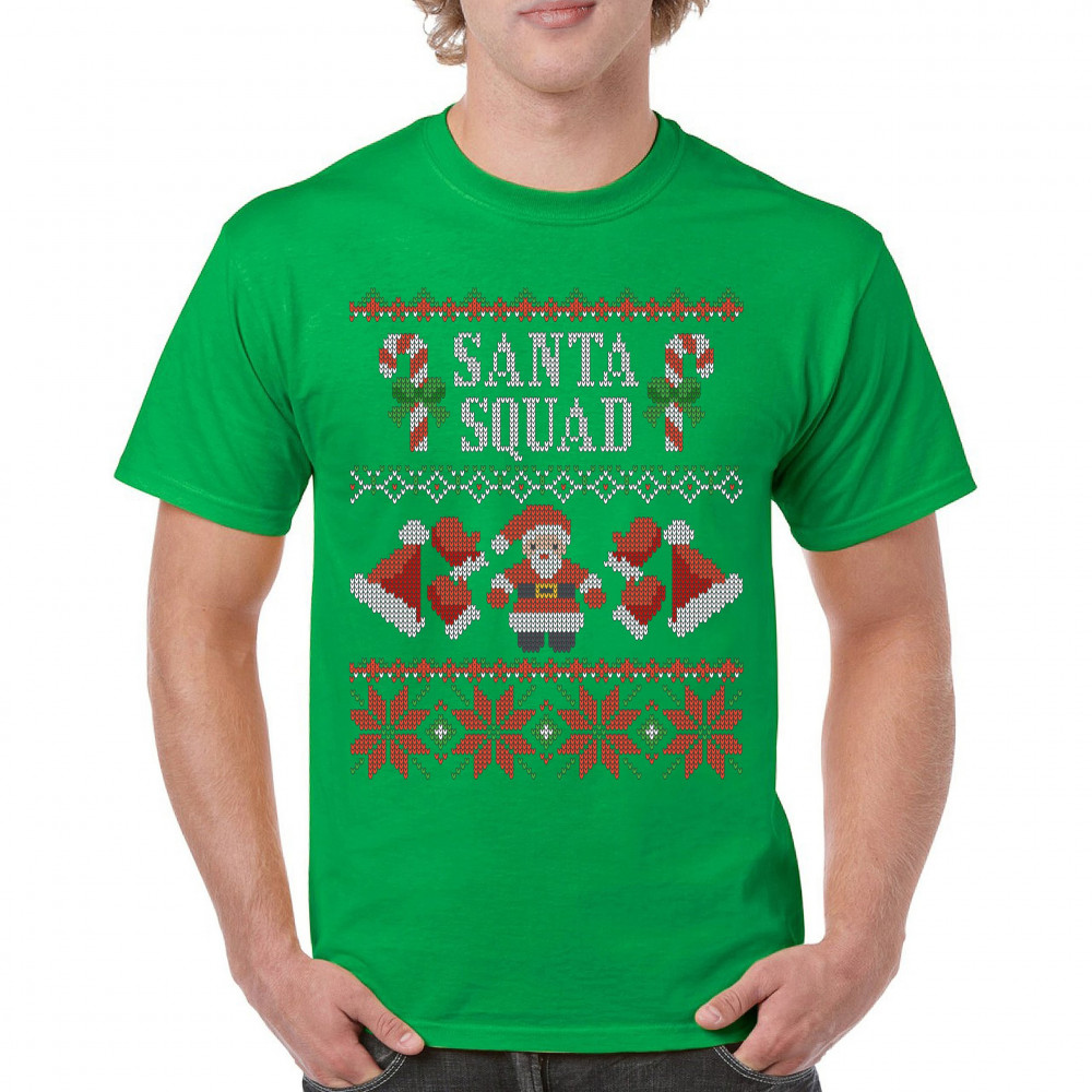 SANTA SQUAD t-shirt cute ugly sweater merry and bright christmas men's tee green