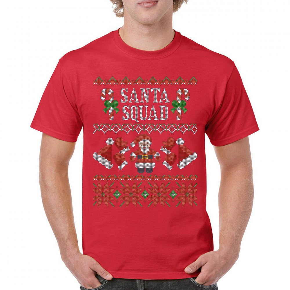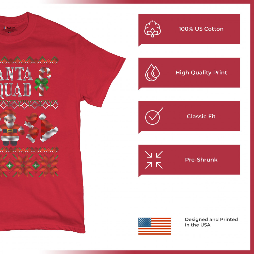 SANTA SQUAD t-shirt cute ugly sweater merry and bright christmas men's tee red