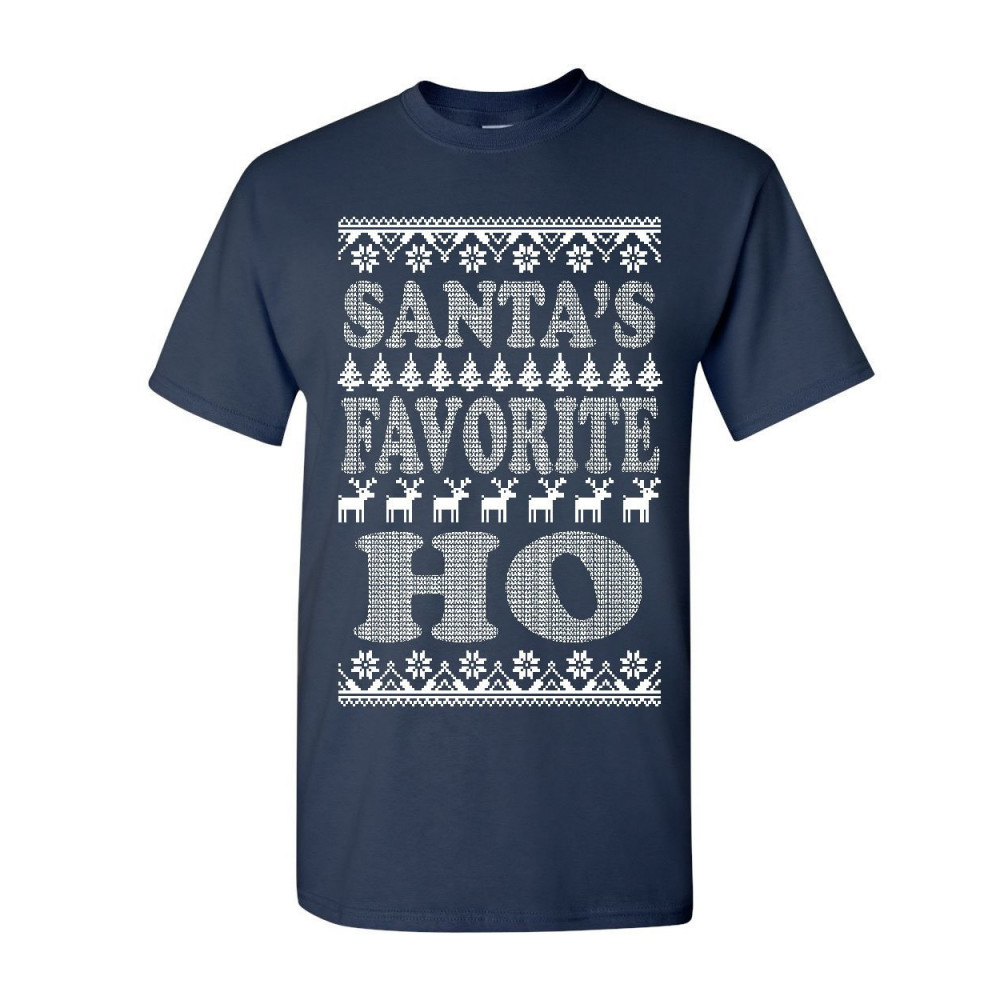 SANTA'S FAVORITE HO t-shirt ugly sweatshirt xmas ho ho ho cotton tee navy blue