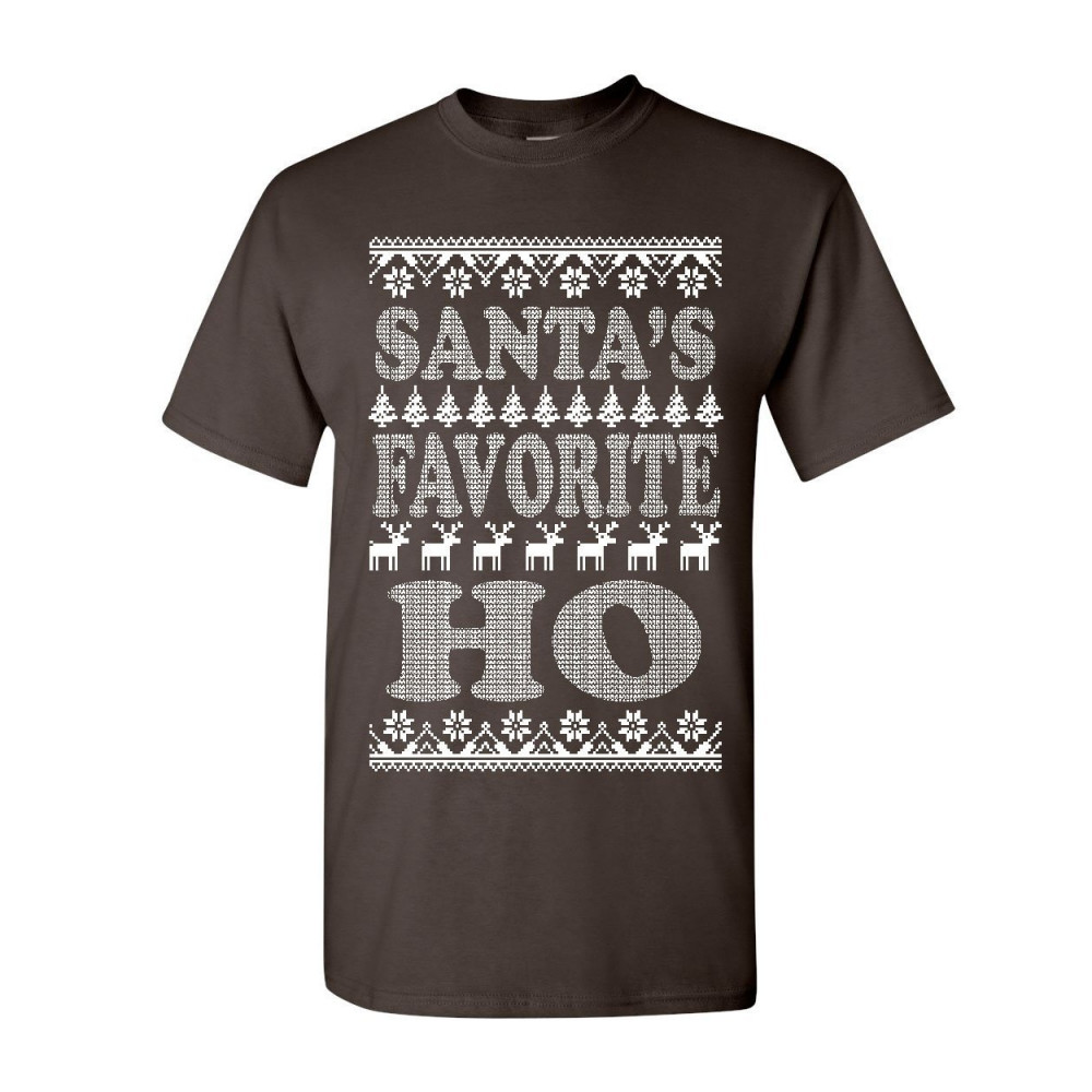 SANTA'S FAVORITE HO t-shirt ugly sweatshirt xmas ho ho ho cotton tee brown