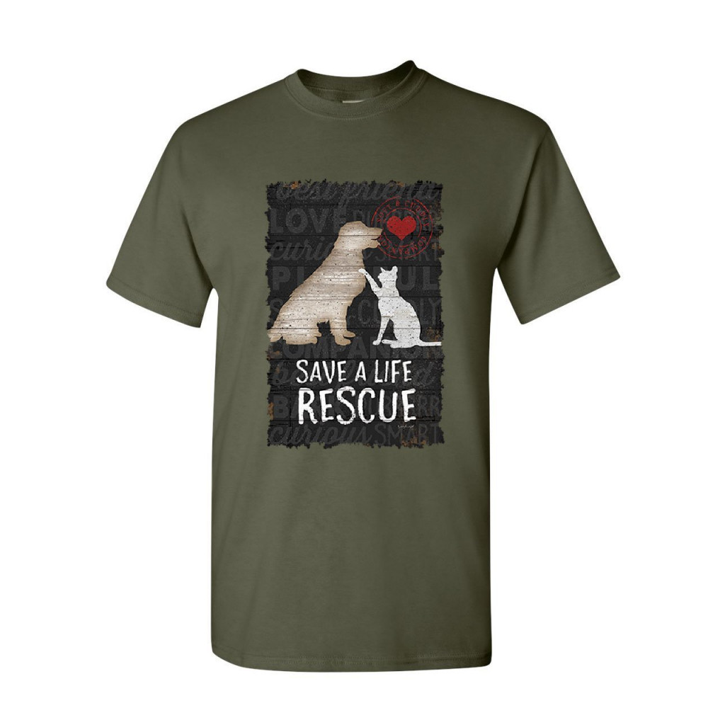 SAVE A LIFE rescue a pet t-shirt dog cat kitty puppy shelter paw mens tee shirt military green