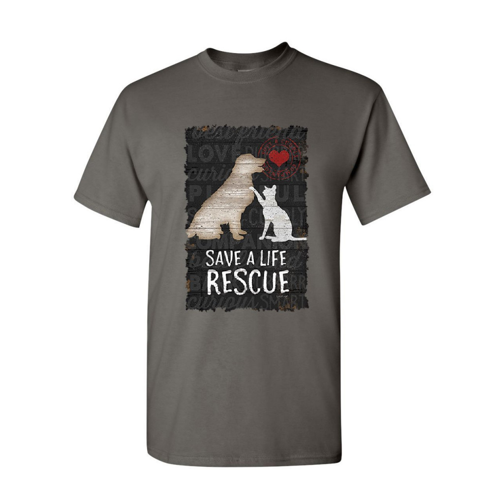 SAVE A LIFE rescue a pet t-shirt dog cat kitty puppy shelter paw mens tee shirt charcoal