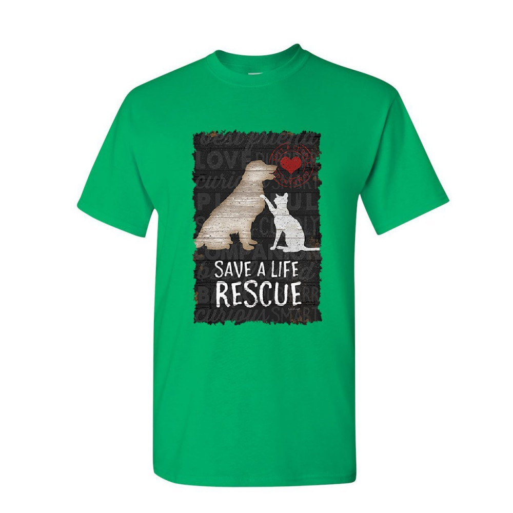 SAVE A LIFE rescue a pet t-shirt dog cat kitty puppy shelter paw mens tee shirt green