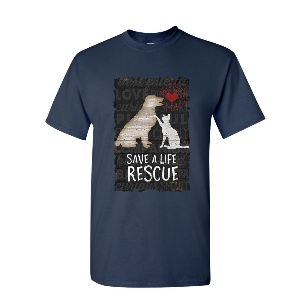 SAVE A LIFE rescue a pet t-shirt dog cat kitty puppy shelter paw mens tee shirt navy blue