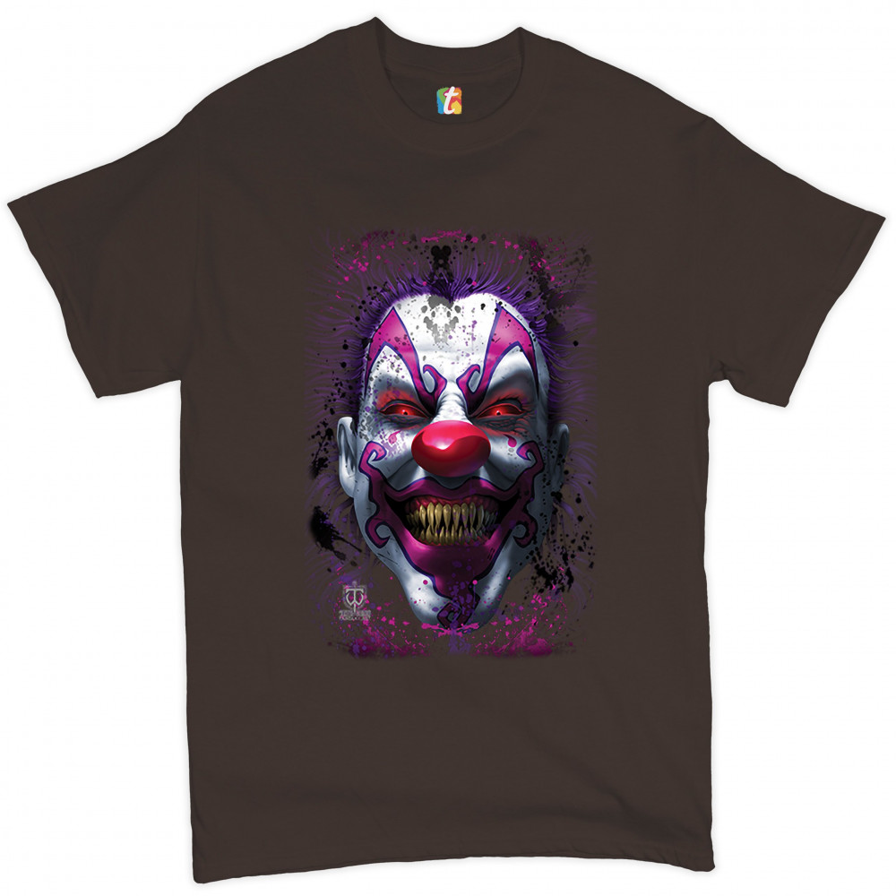SCARY CREEPY GRINNING CLOWN t-shirt spooky halloween horror men's tee brown
