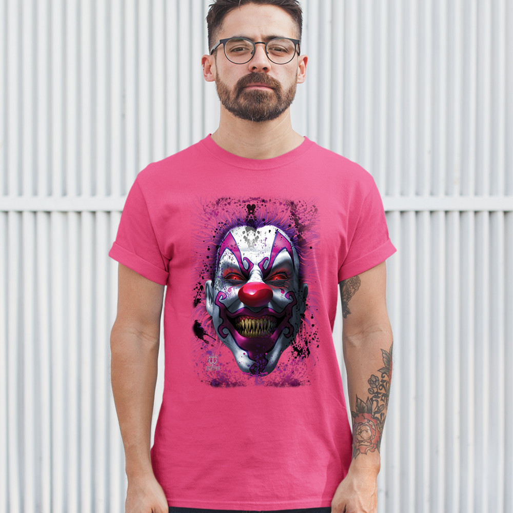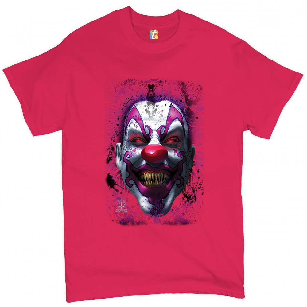 SCARY CREEPY GRINNING CLOWN t-shirt spooky halloween horror men's tee hot pink