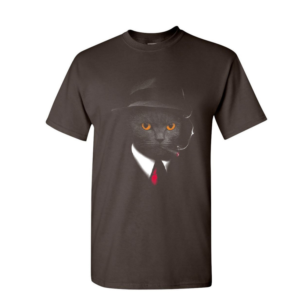 SECRET AGENT CAT t-shirt detective kitty funny spy cigar pet mens tee shirt brown