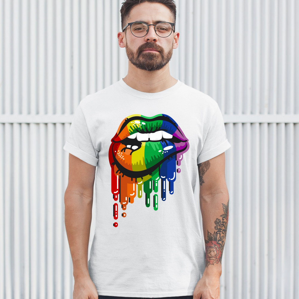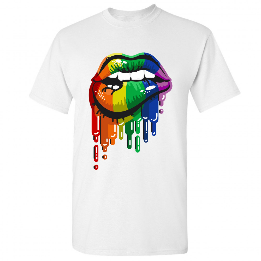 SEXY MELTING RAINBOW LIPS t-shirt lgbt queer gay pride love wins men's tee white