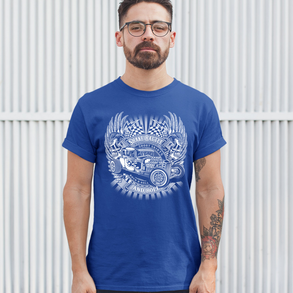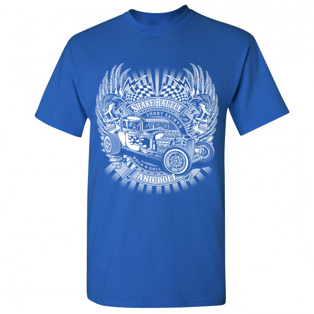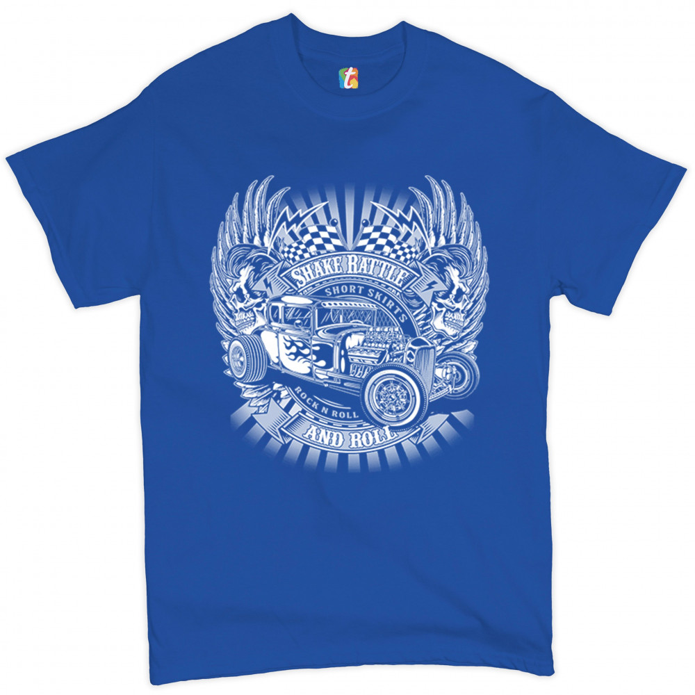 SHAKE RATTLE AND ROLL t-shirt old school attitude vintage hot rod men's tee royal blue