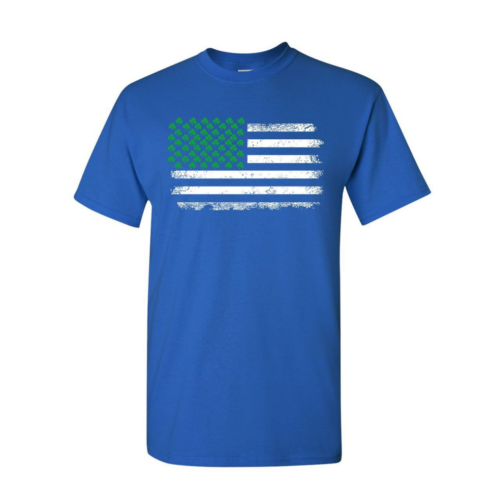 SHAMROCK AMERICAN FLAG t-shirt stars and stripes st. patrick's mens tee shirt royal blue