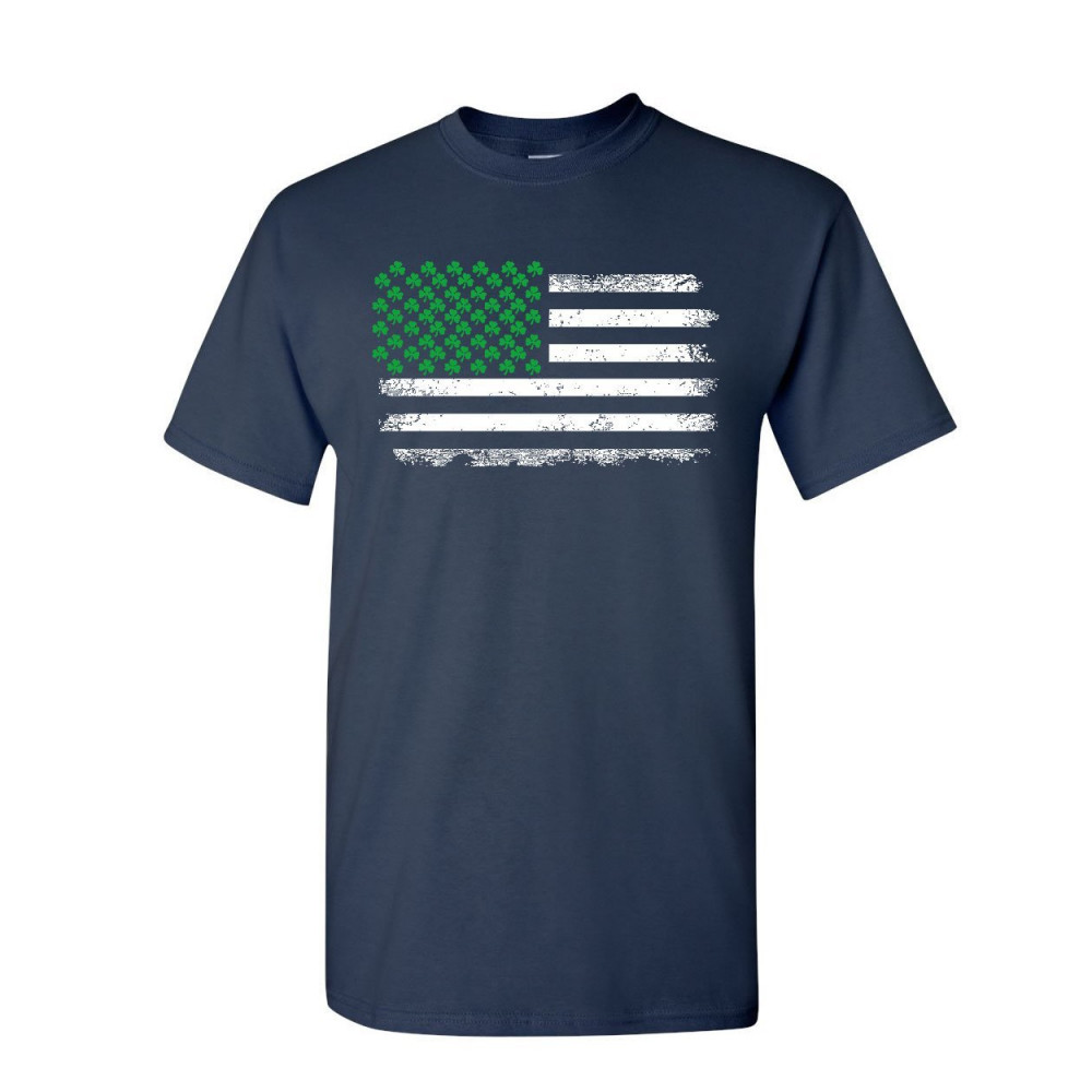 SHAMROCK AMERICAN FLAG t-shirt stars and stripes st. patrick's mens tee shirt navy blue