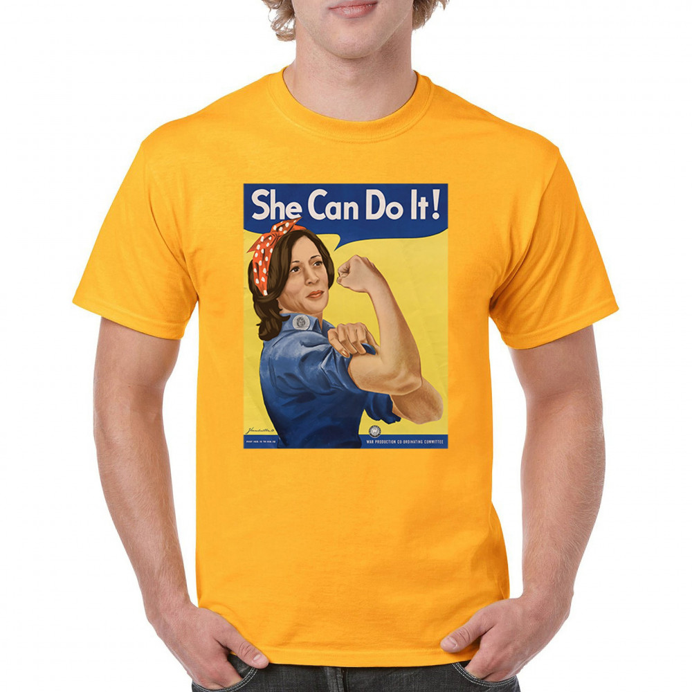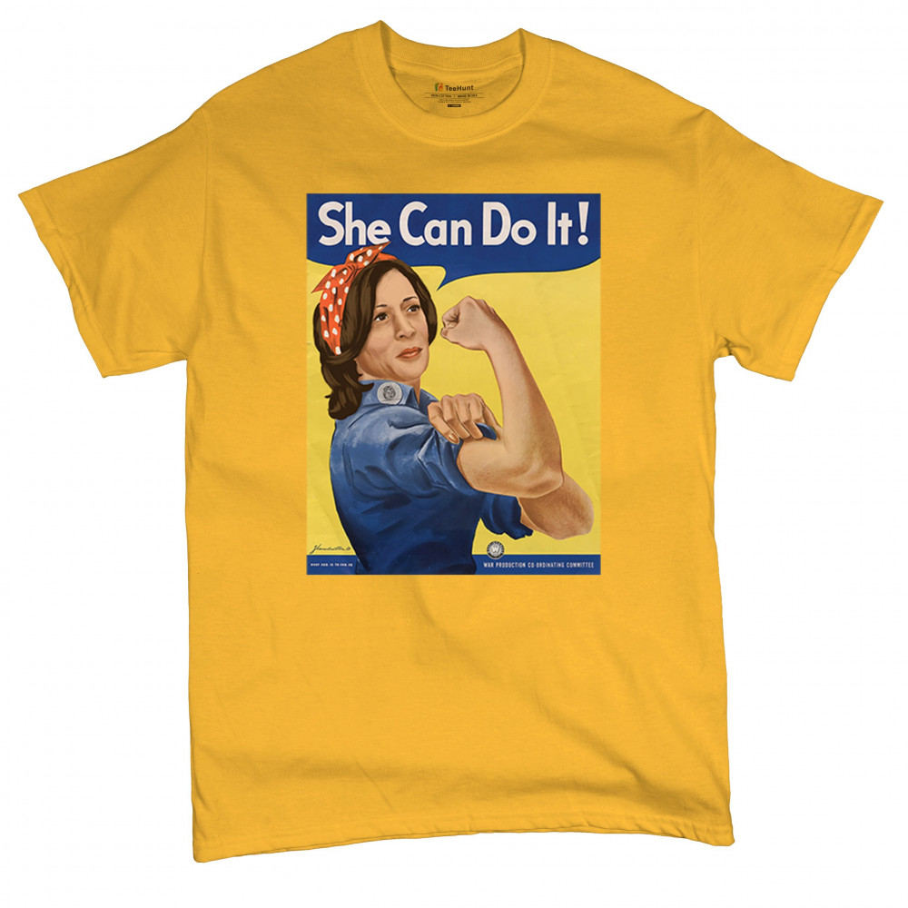 Show your support for Kamala Harris in 2024 with this empowering "She Can Do It!" design. Inspired by Rosie the Riveter, it symbolizes strength, equality, and progress.