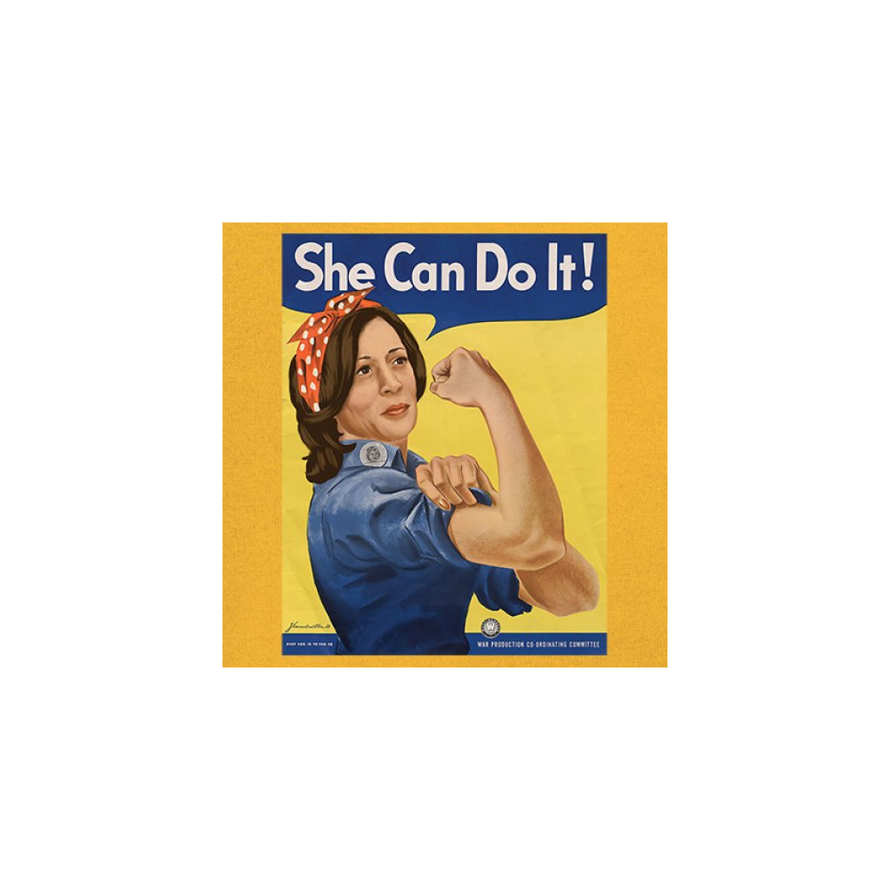 Support Kamala Harris in her 2024 presidential bid with this powerful "She Can Do It!" design. Inspired by the iconic Rosie the Riveter, this artwork is a symbol of strength, equality, and determination. It's the perfect choice for anyone who believes in Harris’s vision for a better future. Whether at rallies, events, or in your daily life, this design will proudly display your commitment to justice and progress. Let’s unite under the banner of equality and aim for victory together.