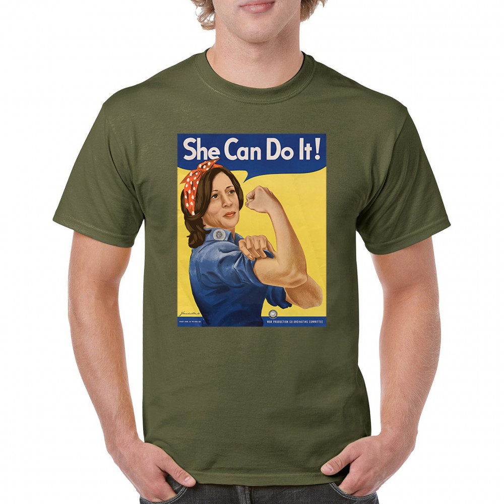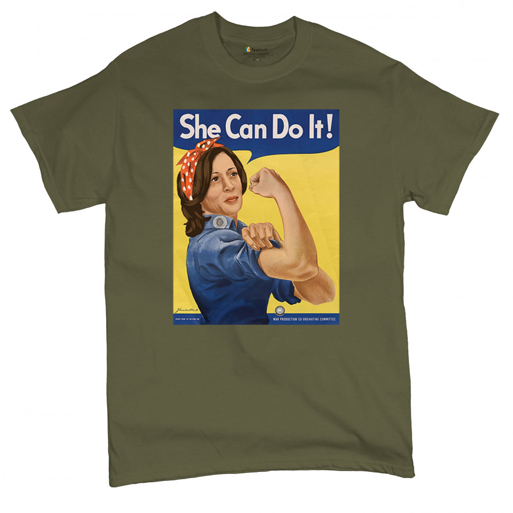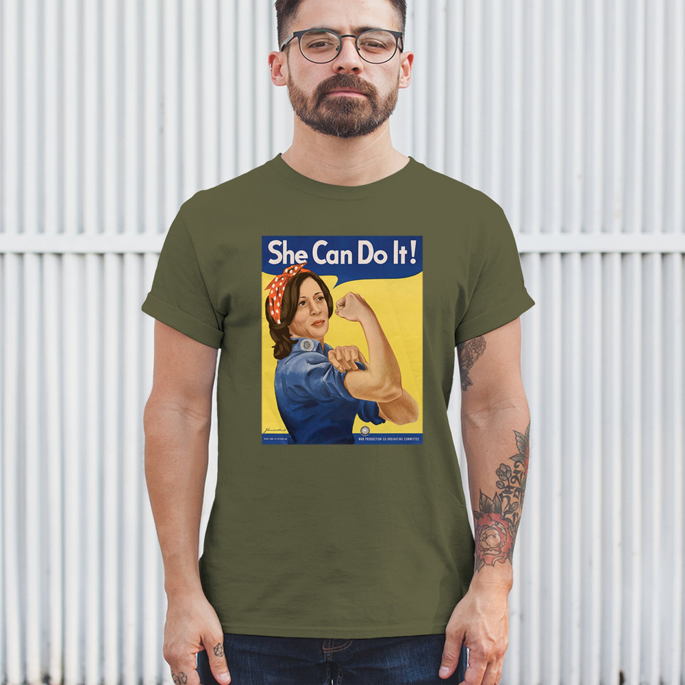 Show your support for Kamala Harris in 2024 with this empowering "She Can Do It!" design. Inspired by Rosie the Riveter, it symbolizes strength, equality, and progress.
