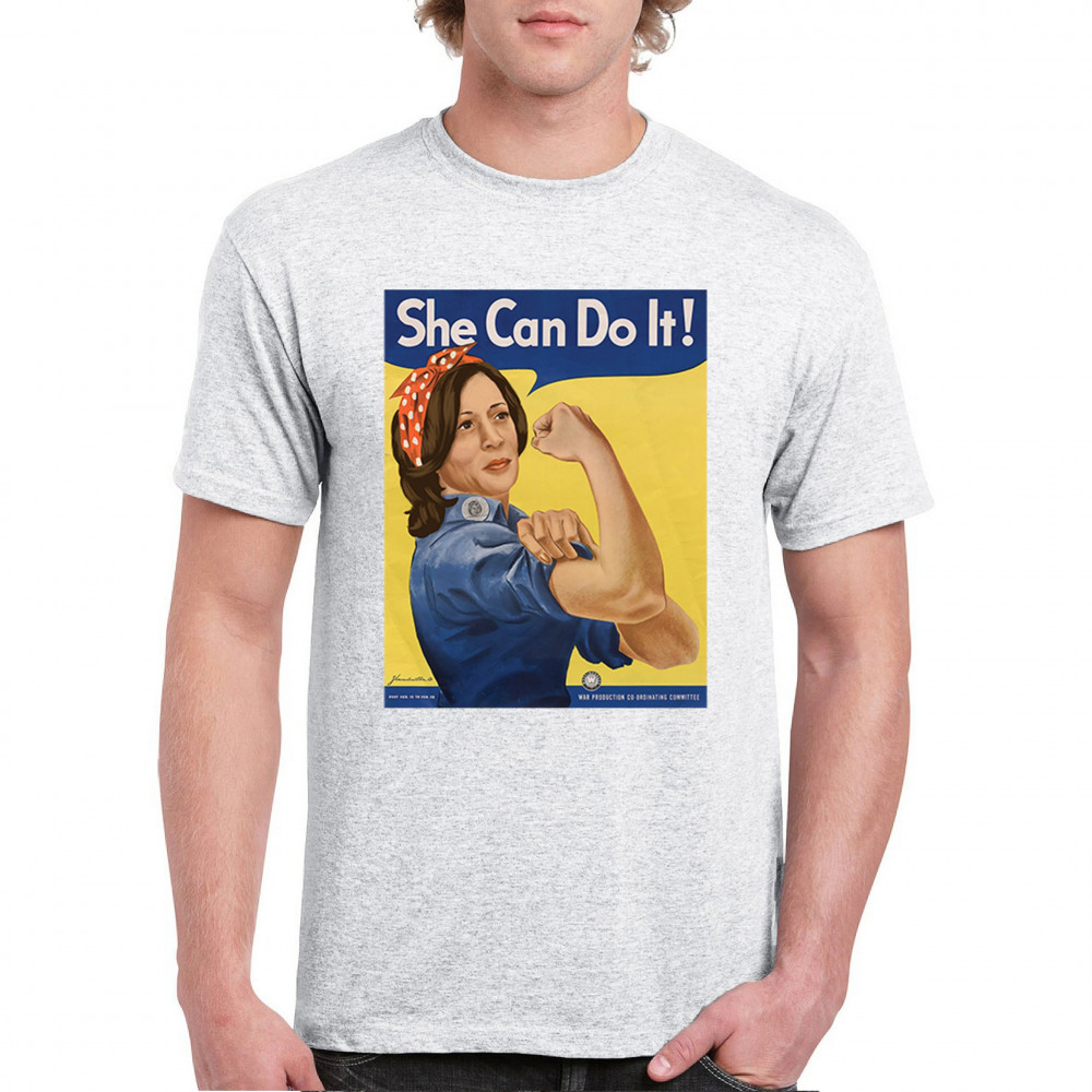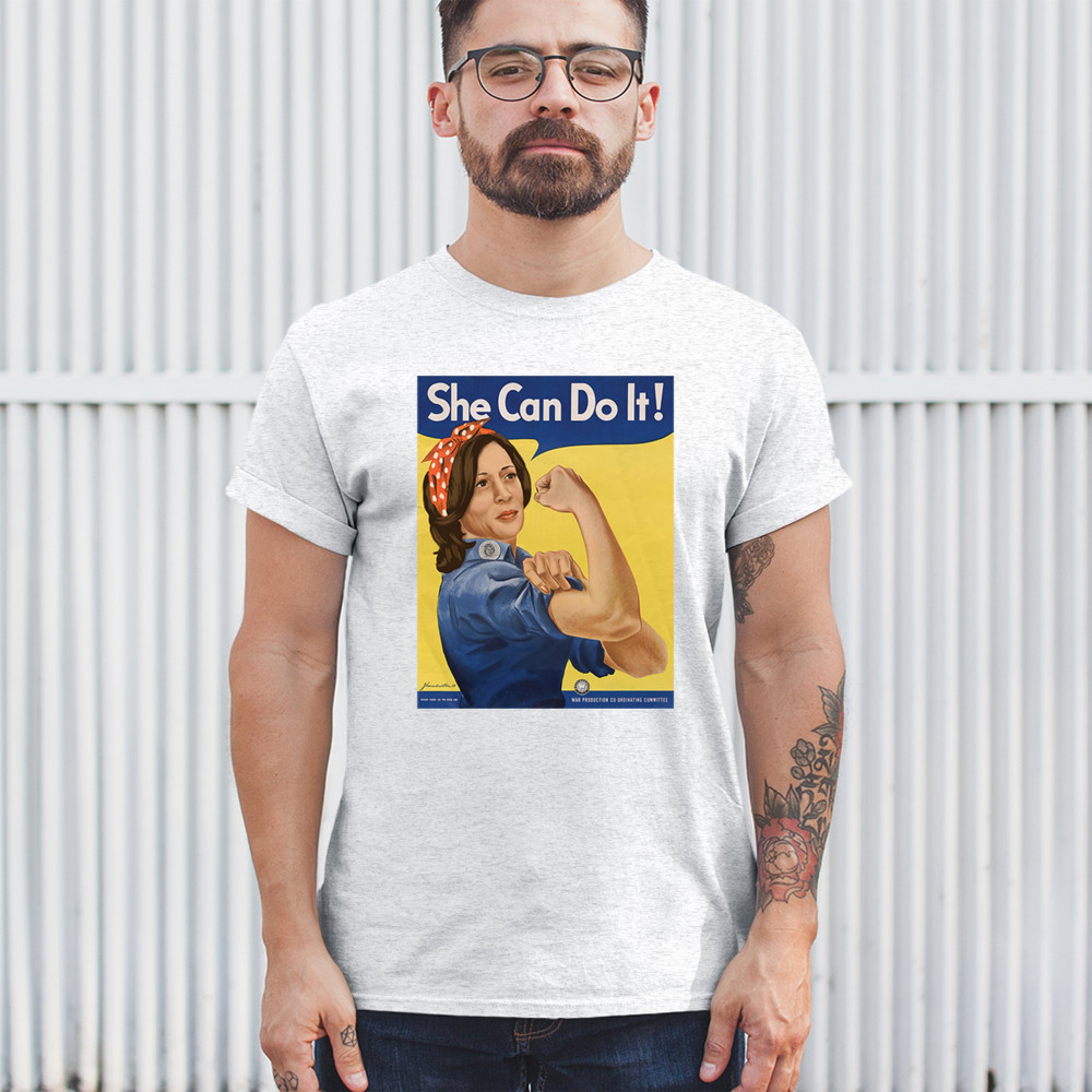 Show your support for Kamala Harris in 2024 with this empowering "She Can Do It!" design. Inspired by Rosie the Riveter, it symbolizes strength, equality, and progress.