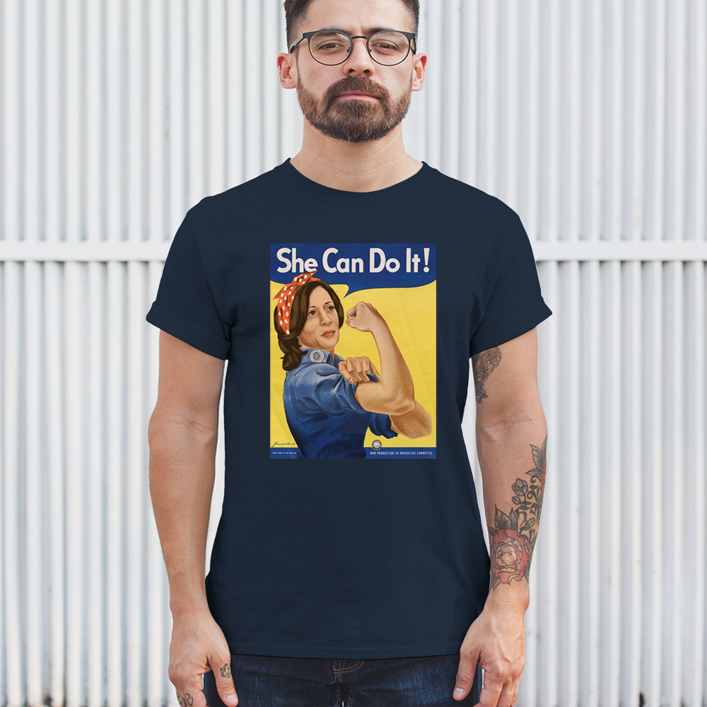 Show your support for Kamala Harris in 2024 with this empowering "She Can Do It!" design. Inspired by Rosie the Riveter, it symbolizes strength, equality, and progress.