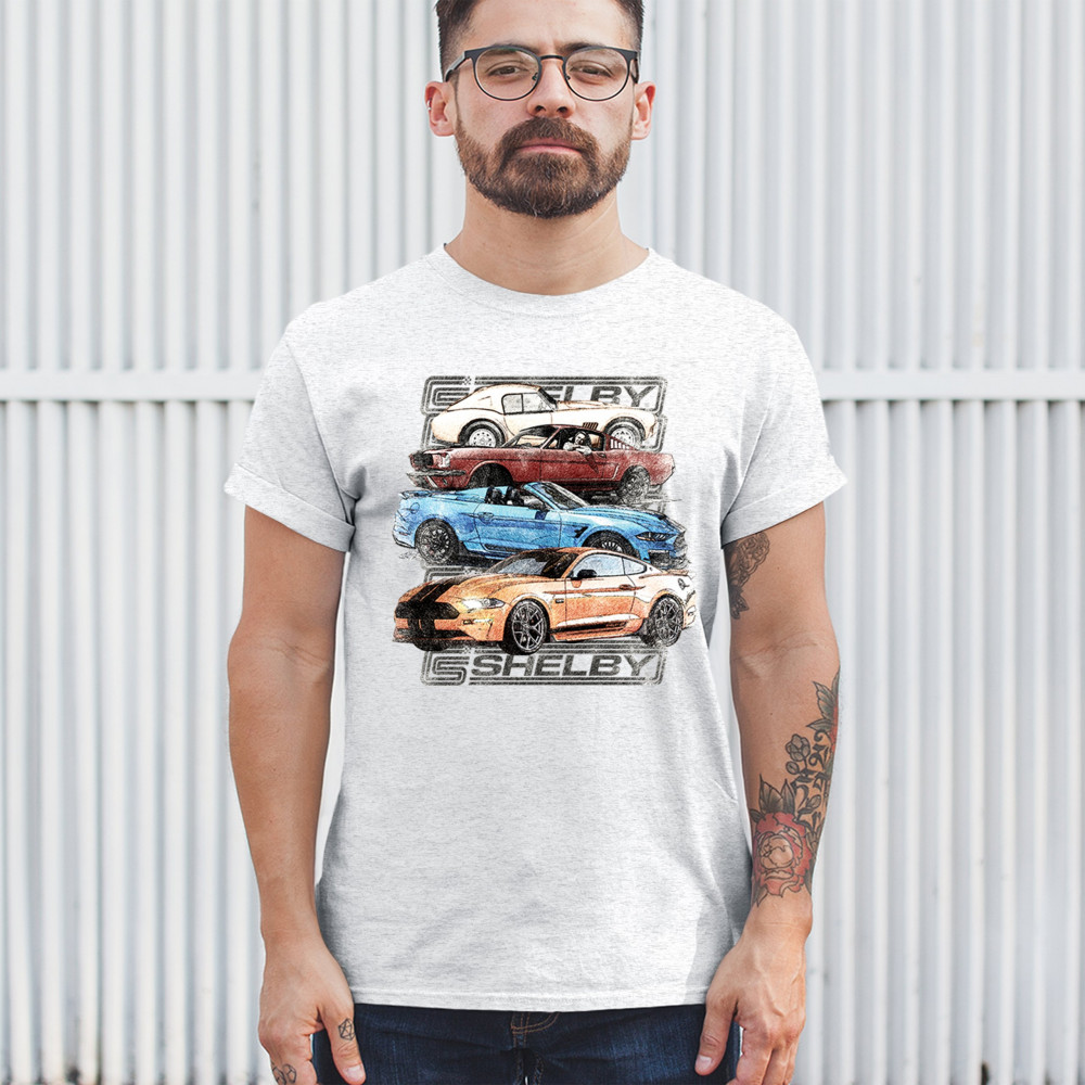 This artistic rendition showcases the Ford Mustang's journey from a 1966 classic to the modern marvels of Ford racing. It's an ode to the muscle car evolution, powered by the genius of Carroll Shelby and the grit of American performance. With the Shelby Cobra at its heart, this design is for the enthusiast, the collector, the racer. The GT350, the Boss 302, and the legendary Ken Miles come alive, making this the perfect Shelby Cobra gift, a hat tip to half a century of American icons.