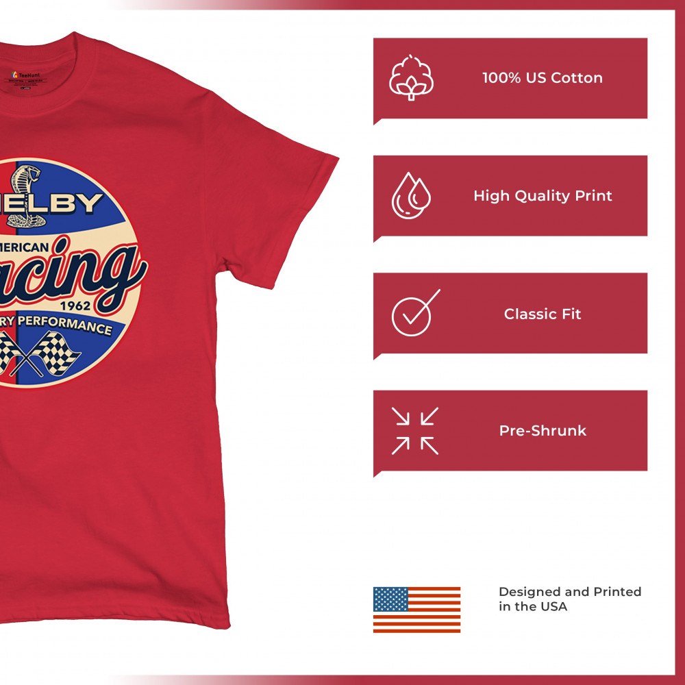 Rev up your wardrobe with our Shelby American Racing design, a tribute to 50 years of Ford Mustang glory and Carroll Shelby's racing legacy.