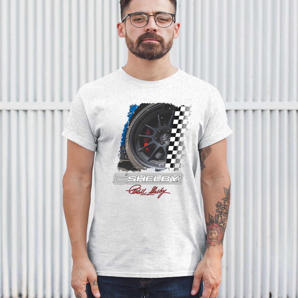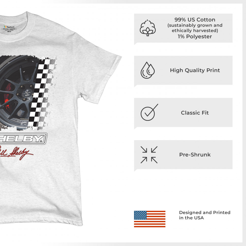 Ignite your wardrobe with this authentic Shelby Mustang design, celebrating 50 years of American-made racing legend and the unparalleled muscle car era.