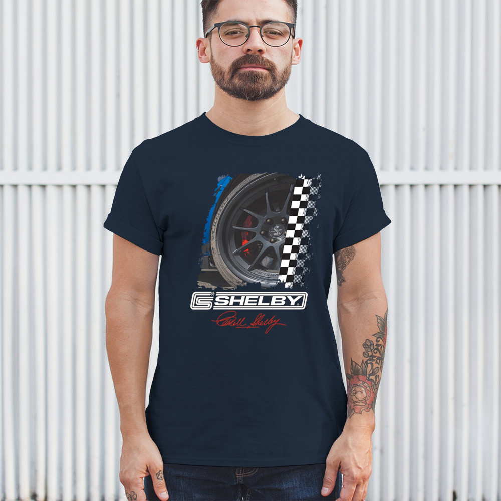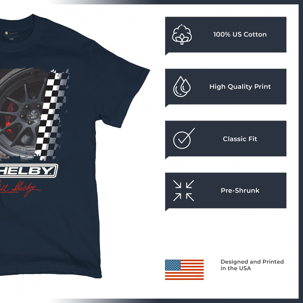 Ignite your wardrobe with this authentic Shelby Mustang design, celebrating 50 years of American-made racing legend and the unparalleled muscle car era.