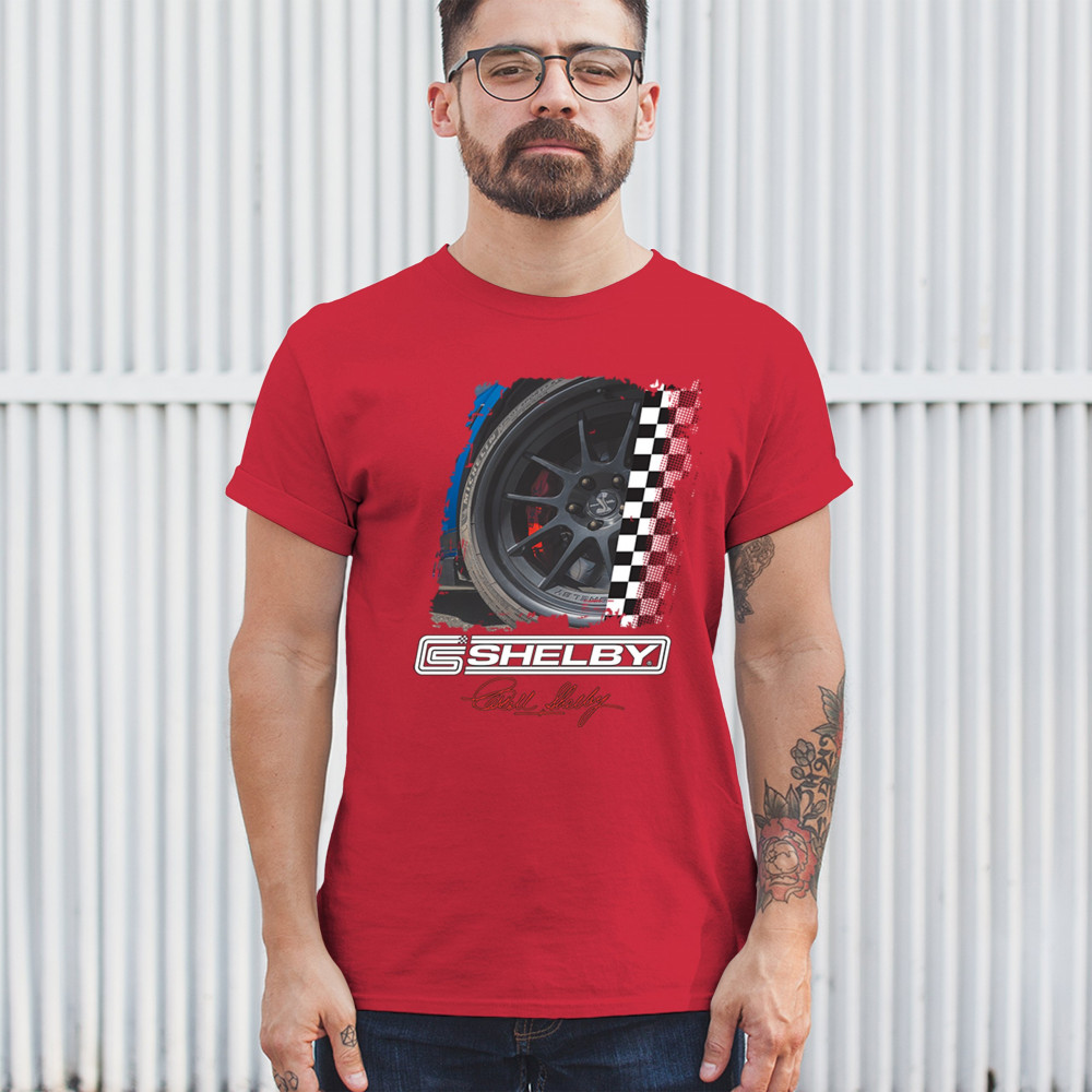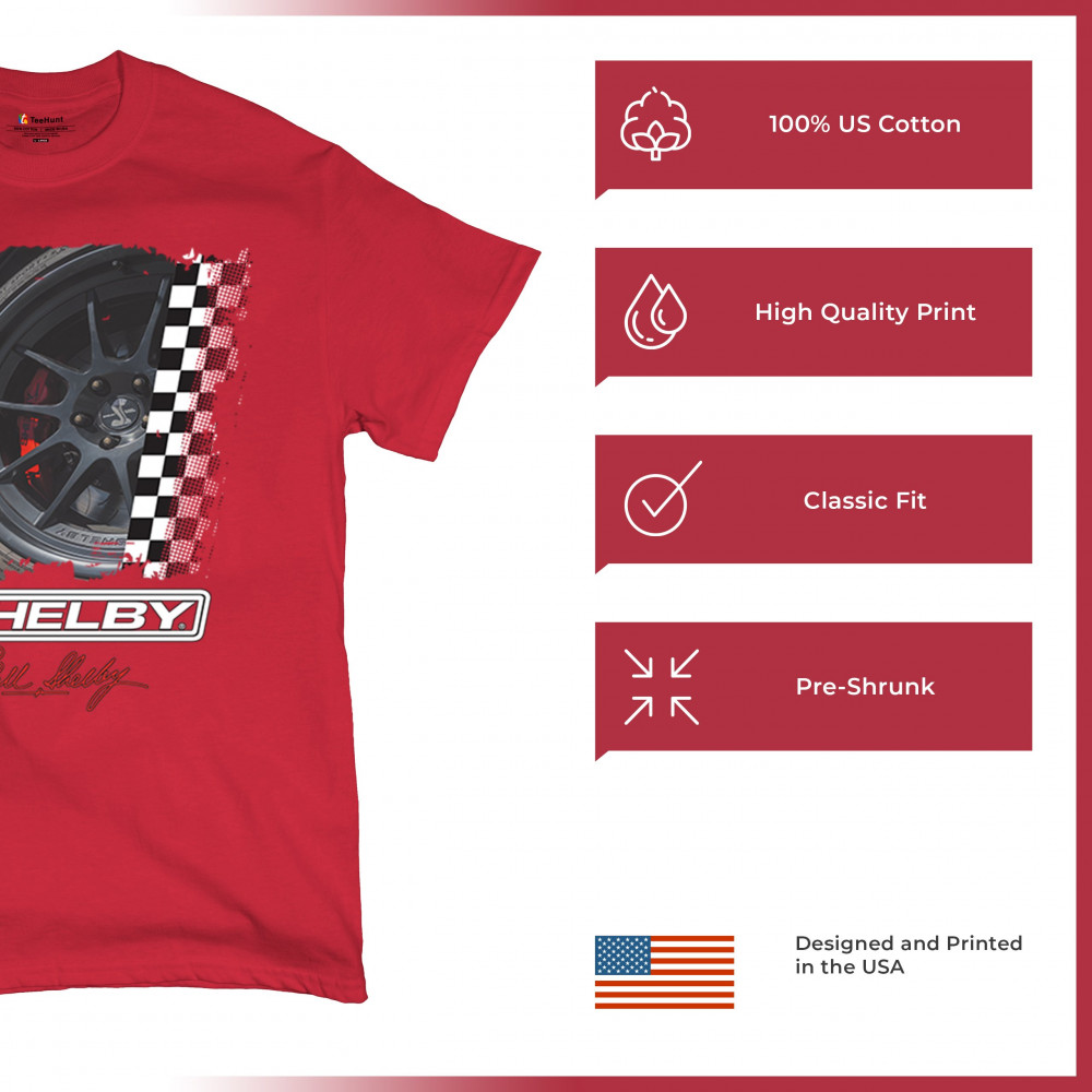 Ignite your wardrobe with this authentic Shelby Mustang design, celebrating 50 years of American-made racing legend and the unparalleled muscle car era.