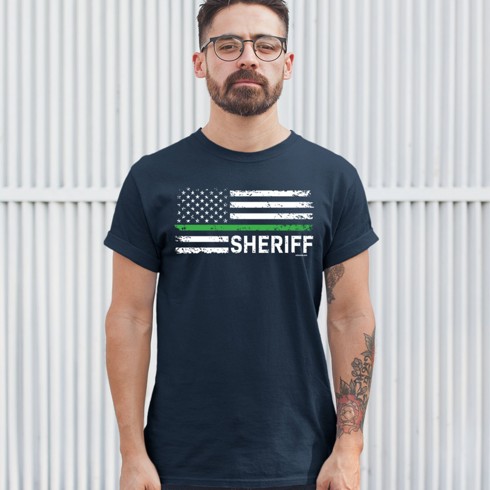 SHERIFF DISTRESSED AMERICAN FLAG t-shirt first responders patriotic men's tee navy blue